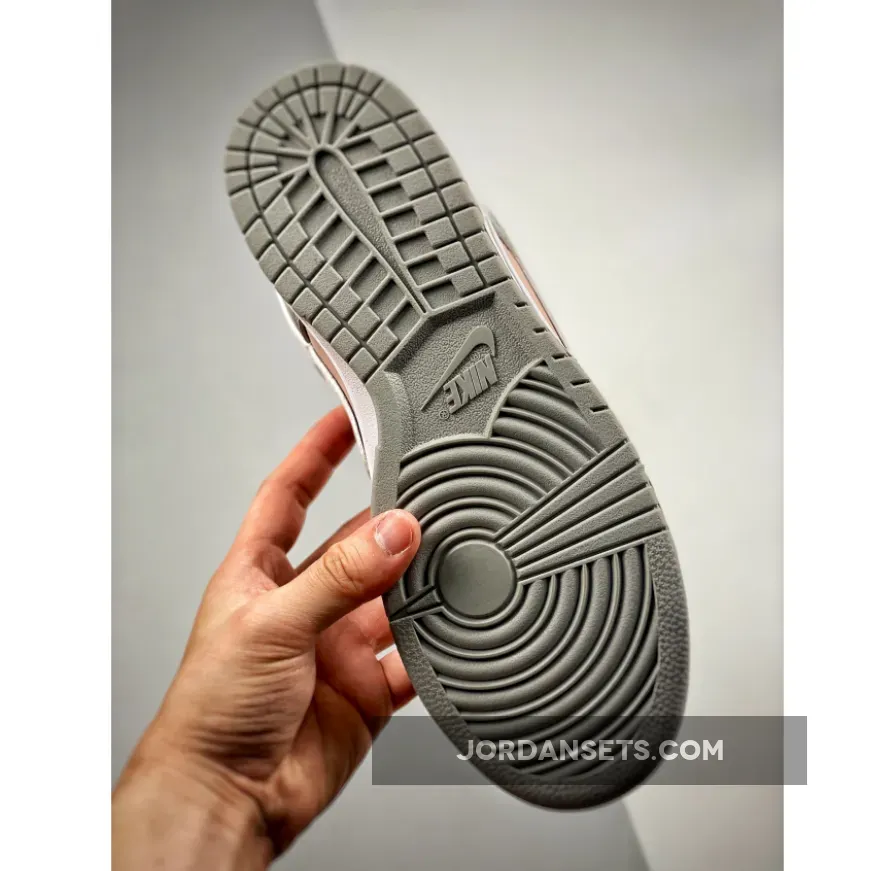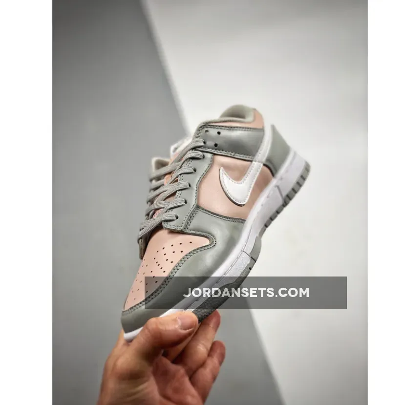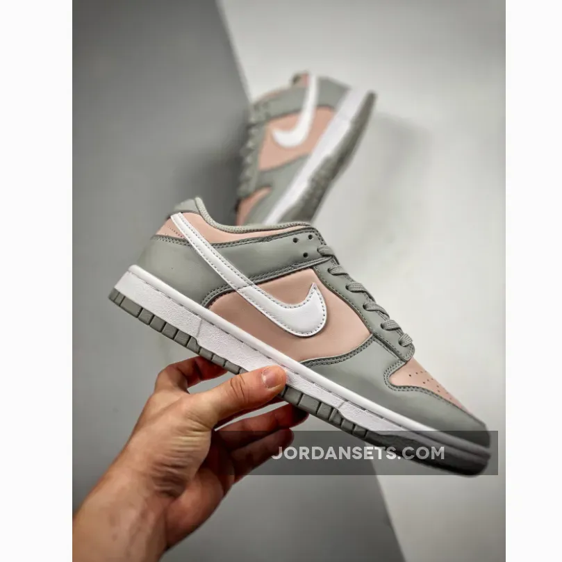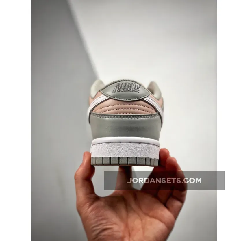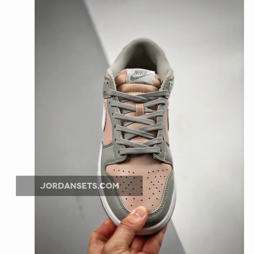 Dressed in a dusty pink leather upper and mesh tongue with leather overlays in grey, this colorway is sure to be a must-have for this summer. White Swoosh contrasts the other hues with the tongue tag also in white with metallic silver Nike branding. Finishing off the Dunk Low is a white midsole with a grey outsole.