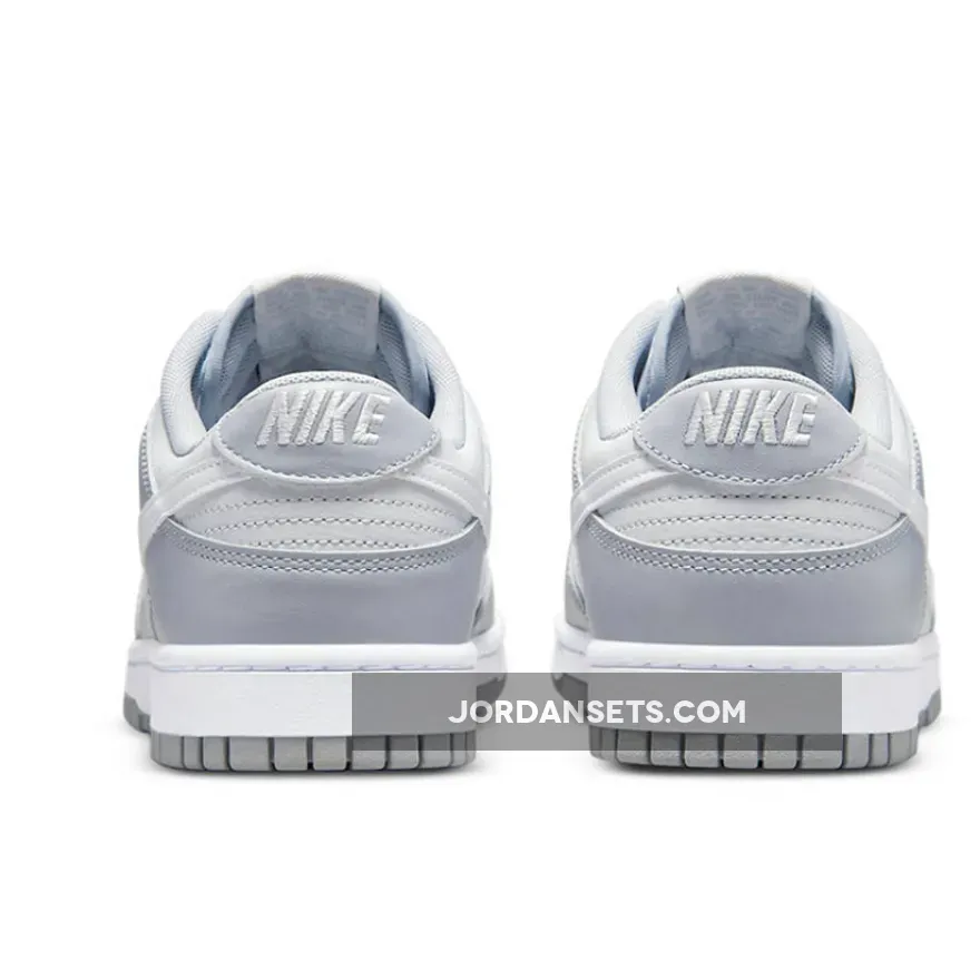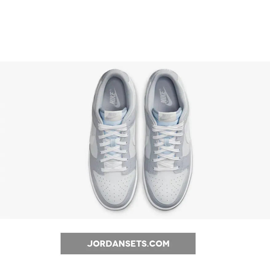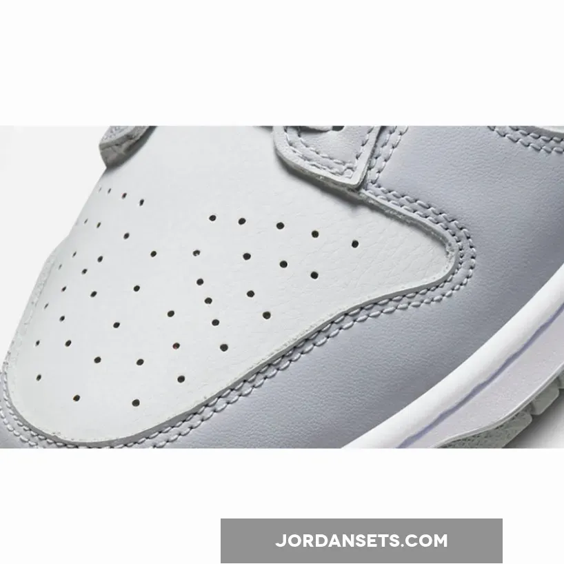 A new Nike Dunk Low comes dressed in a cool two-toned colourway. Introducing the Nike Dunk Low Grey White.The base of this shoe’s upper is light grey tumbled leather on the toe box, the quarter and the heel. The overlays are smooth leather in a slighter darker grey on the toe cap, the mudguard, the eye stay panel and the foxing. This darker grey is repeated on the mesh sockliner. The profile Swooshes on the medial and lateral sides are a clean white, matching the laces. The tongue contributes to all the cool tones in an icy blue with grey piping.
