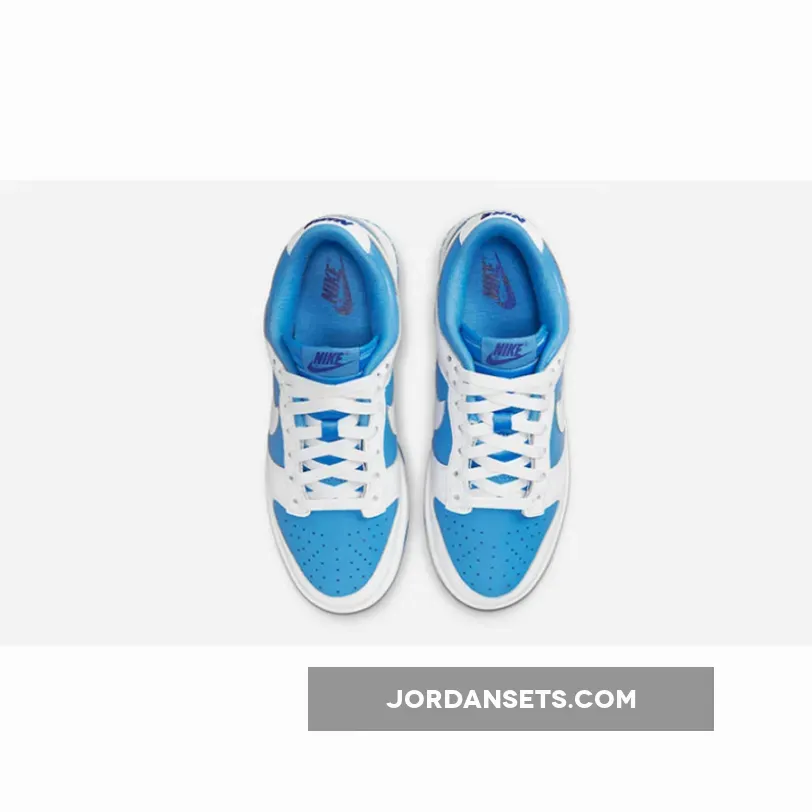 Now and then, Nike likes to shake things up when it comes to iconic colourways. This time, it’s the Peter Moore-designed Nike Dunk Low that’s getting the transposed treatment. Check out the Nike Dunk Low Reverse UNC. This Dunk Low features the renowned University of North Carolina (UNC) blue not on the overlays but on the smooth leather base. “Colourless” white takes over on the toe cap, the foxing and even the profile Swooshes on both the medial and lateral sides of the shoe. Dark blue on UNC blue Nike branding sits on the tongue while embroidered navy blue Nike text branding adorns the all-white heel tab.