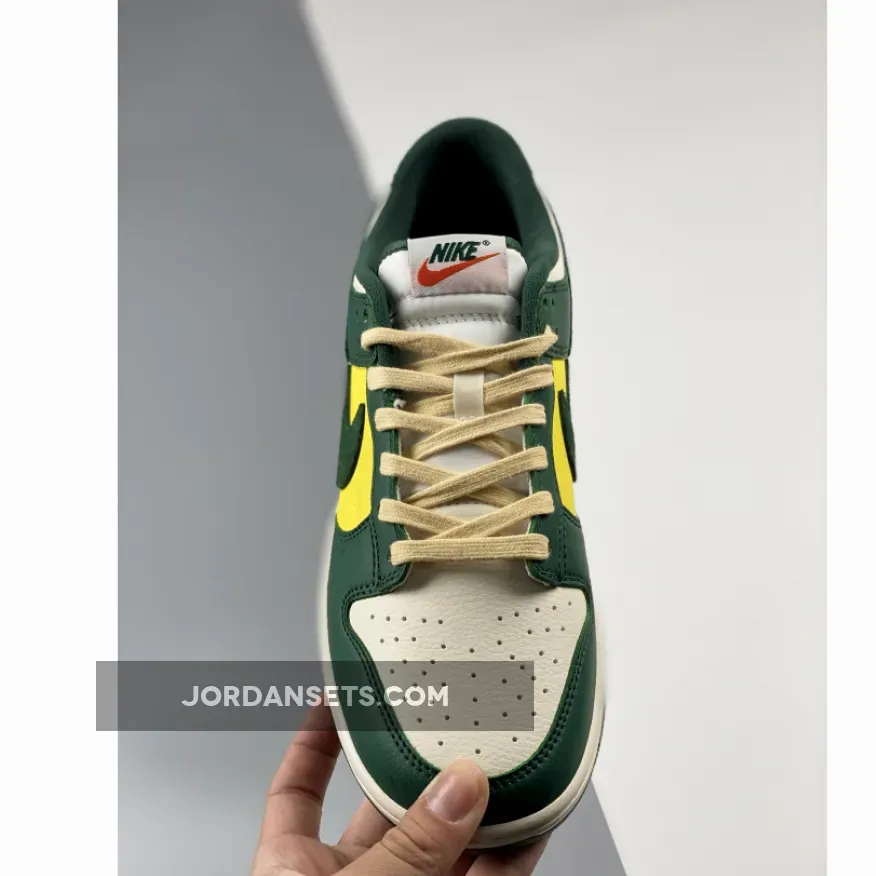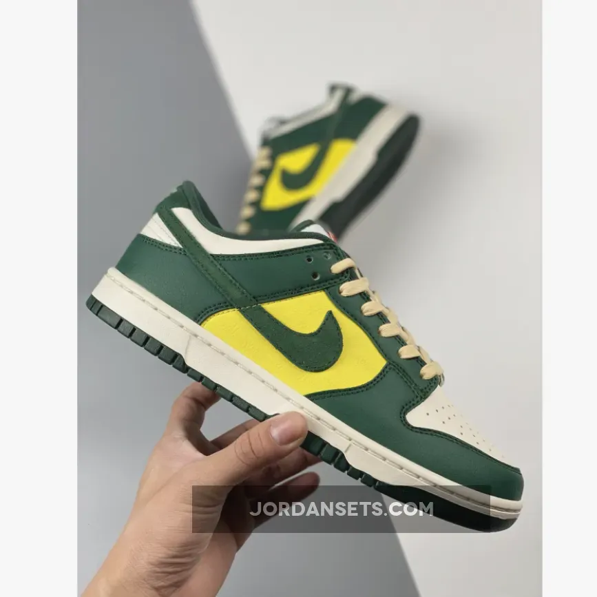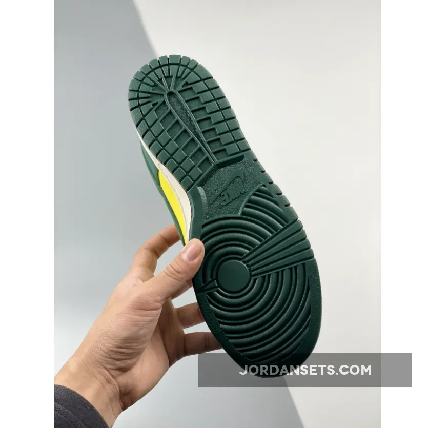 The Swoosh arrives with this vintage collegiate make-up in which to dress up its favourite retro silhouettes. Now seeking its turn is the Dunk Low, selected out of the line-up after eagerly waving its hand in the air. Dark green on Nike Shoes has often represented well-known sports teams such as the Oregon Ducks Player Exclusives and the Michigan State “Spartan Green” Dunk from the Be True to Your School series of 1985. Tapping into that rich collegiate history now is this Dunk Low in the “Noble Green” colourway.For the majority of the upper, we can find a “Noble Green” in tumbled leather on the toe guard, heel and lace panels. The Swoosh is also imbued with the same shade of green, opting for a suede finish rather than its tumbled leather counterparts. The yellow sidewall breaks up the white and green colour blocking that draws most of the focus on this release. The sail laces help push the shoe’s 80s aesthetic and are a staple within the footwear industry’s aged trend. On the insole, the branding reads “The Sports & Athletics Company” under a vintage-spaced “NIKE” font, adopting the language the brand used shortly after its Blue Ribbon era.If you’re interested in grabbing a pair of these Nike Dunk Low “Sail Yellow Noble Green” then make sure to stay tuned to Our Store Supplier for more info.