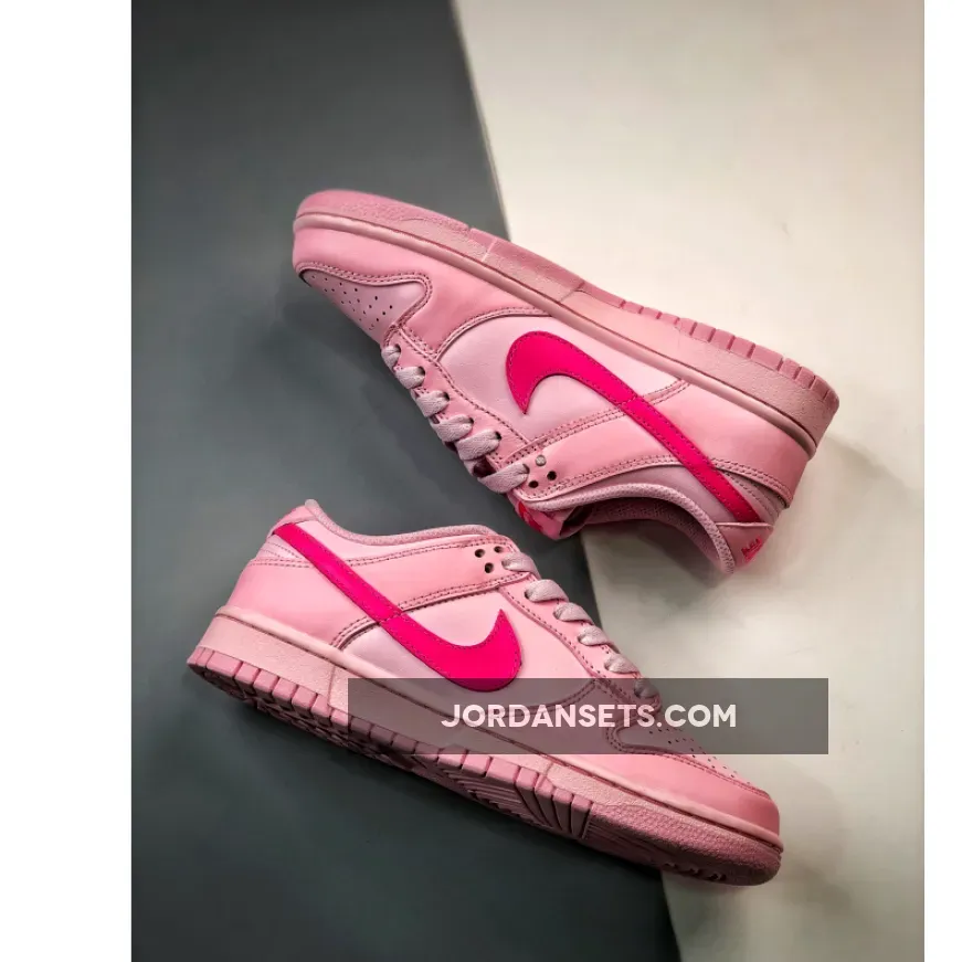 The Nike Dunk Low is releasing a charming new all-pink colourway. Meet the Nike Dunk Low GS Triple Pink that’s perfect for the warmer months.This smaller-sized Dunk Low has a smooth leather construction showing off three shades of pink. The lightest hue covers the base while the overlays are in a more carnation pink. The darkest shade called Hyper Pink comes in the form of the profile Swooshes on both sides of the shoe as well as the tongue tab logo and the embroidered heel tab logo.