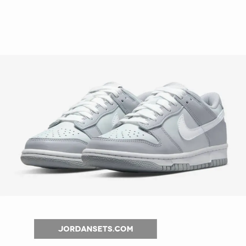The Nike Dunk Low expands its neutral colourway with the introduction of the Nike Dunk Low GS Grey.This low-cut and smaller-sized shoe comes dressed in a highly versatile two-toned upper. The lighter hue of grey forms the base while a darker, rain cloud-colored grey covers the toe cap, the eyesta panel and the foxing of the shoe. Snowy white signature profile Swooshes on both the medial and lateral sides of the shoe create the only breaks in the greyscale colour scheme, together with the matching laces. The mesh sockliner matches the grey of the shoe’s base.