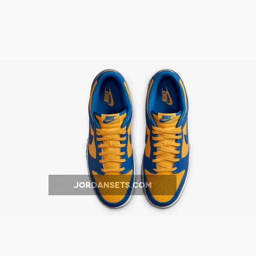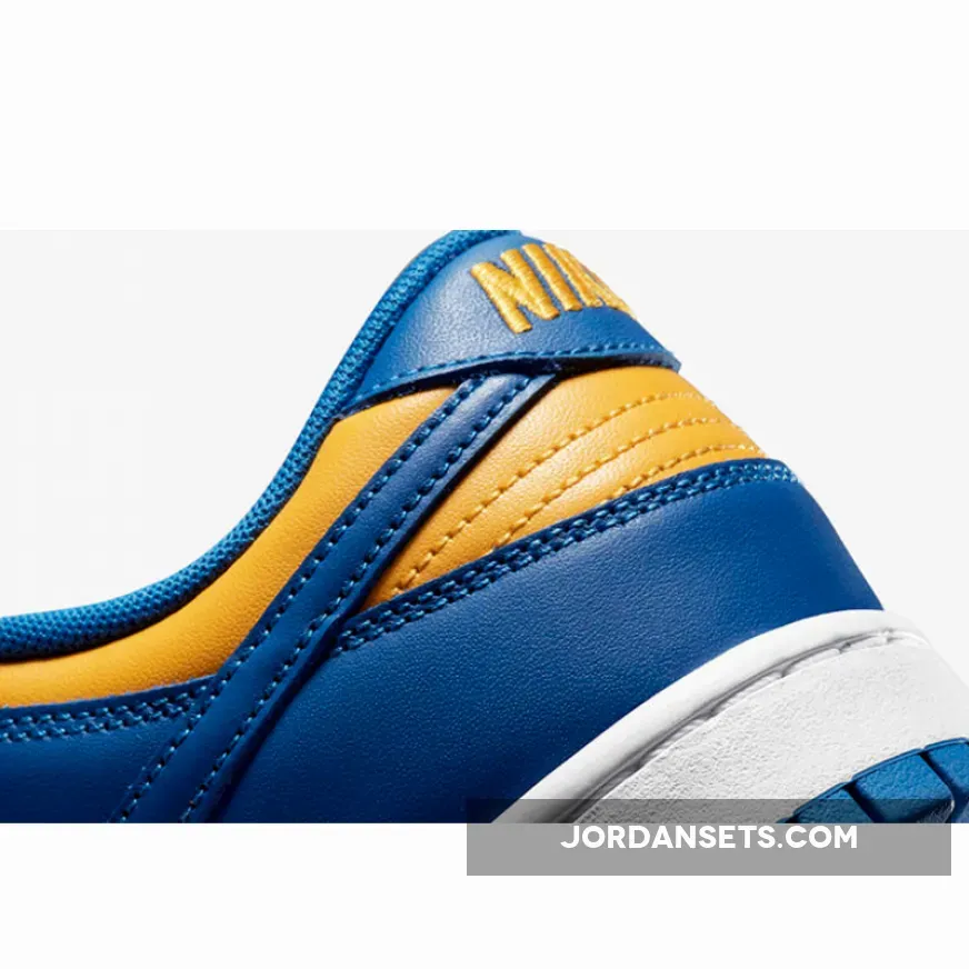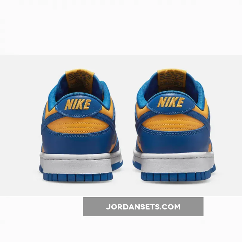 The Nike Dunk Low Blue Yellow is the perfect addition to your spring-summer wardrobe. Its perky colourway featuring the colours of the University of California Los Angeles will surely bring a touch of radiance to your warm-weather looks. A bright yellow leather provides a bold start for this Dunk Low and animates the perforated toe, side panels and heel area. Meanwhile, the blue overlays balance out the sunny base. The same palette extends to the yellow tongue which is accentuated by hits of blue via its label, as well as the matching two-toned heel tab.