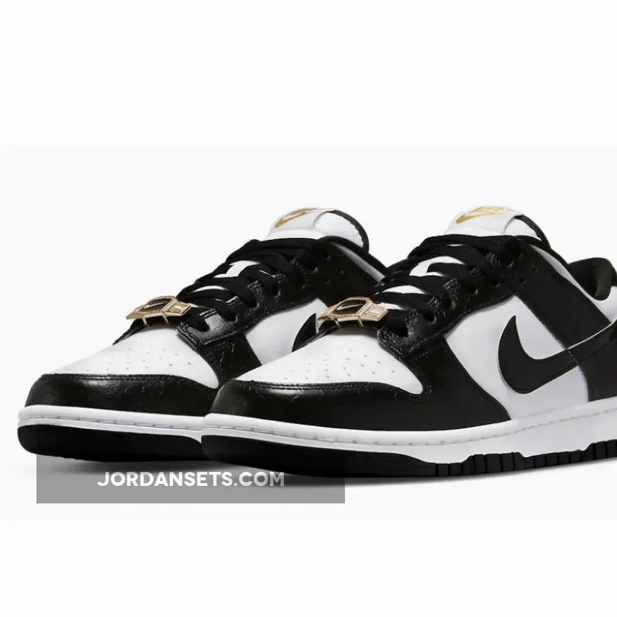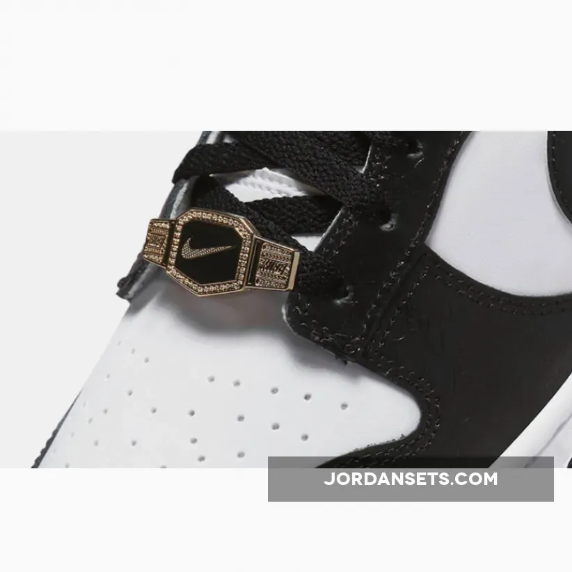 The snazzier sister of the original, Nike Dunk Low Panda 2.0 features the same black and white colourway but with some added glam twists.