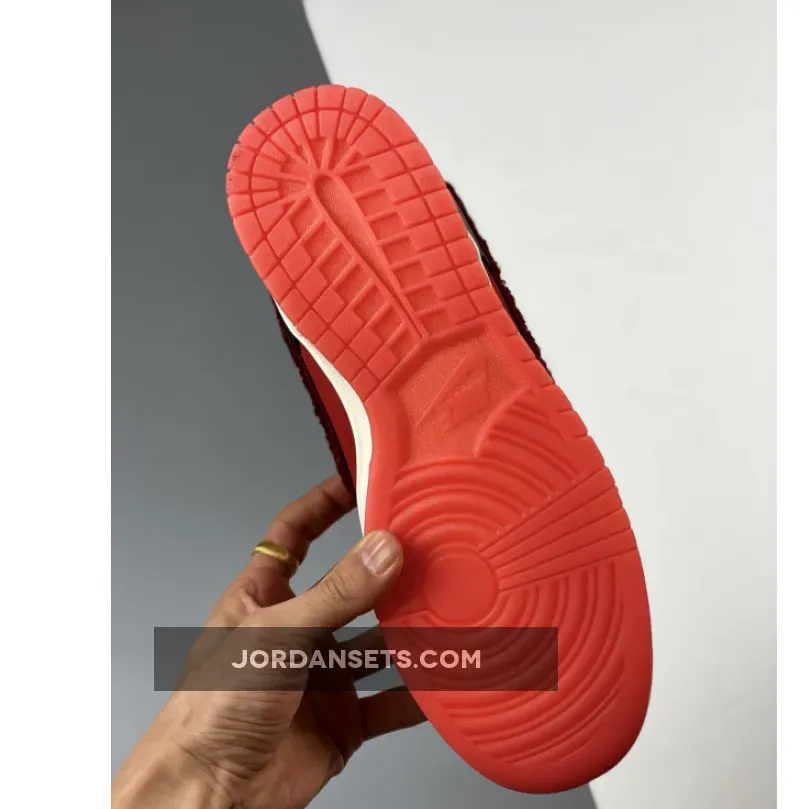 Nike has gone full steam ahead with the Year of the Rabbit theme, taking its Dunk Low silhouette in a number of Rabbit-themed directions. Unlike the rest of the pastel-themed editions of the Year of the Rabbit collection, this Dunk takes inspiration from the brighter elements of the CNY tradition. Regardless, this release looks premium in its approach, mixing up suedes, leathers and furs that give us a quality version of the Nike Dunk Low.A soft red suede contrasts the overlaying brown leather panelling, creating a clash of colours that works surprisingly well. The Swoosh and tongue label adopts the faux-fur elements that were so distinct on the other editions of the YOTR pack, this time dousing it in a dark burgundy to match. On the ankle collar, an orange suede draws further attention to the jade “Nike” spell-out embroidered on the heel. Debossed into the leather back panel is a white rabbit, the most obvious reference to the CNY animal. Rounding off the shoe is the red dubrae and semi-translucent outsole, adding another element and overall special feel to this Dunk.