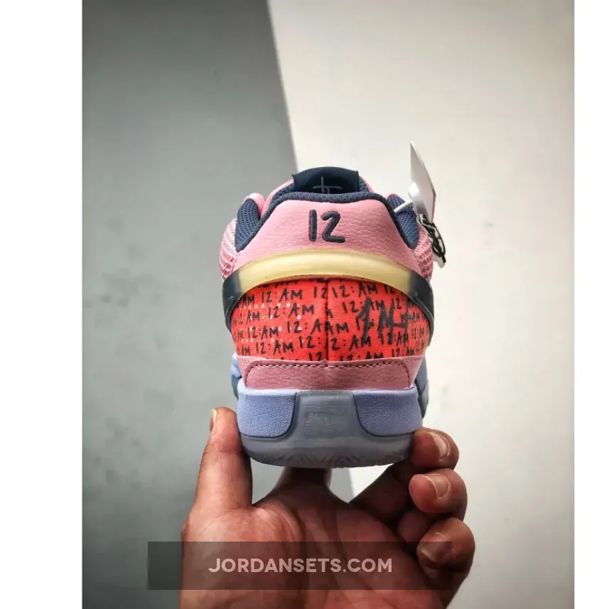 Distinguishing this pair is the “12:AM” inscription encircling the heel, a testament to Morant’s relentless hustle and dedication to mastering his craft even in the silent hours of the night. The sneaker’s textile and leather fusion on its upper dons the delicate “Soft Pink”, which beautifully contrasts with the “Diffused Blue” highlights, reminiscent of the colors of Morant’s beloved Memphis Grizzlies.