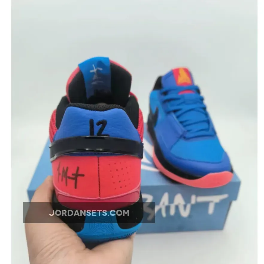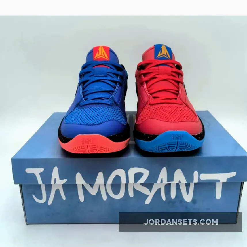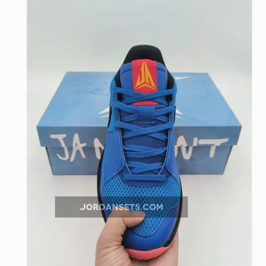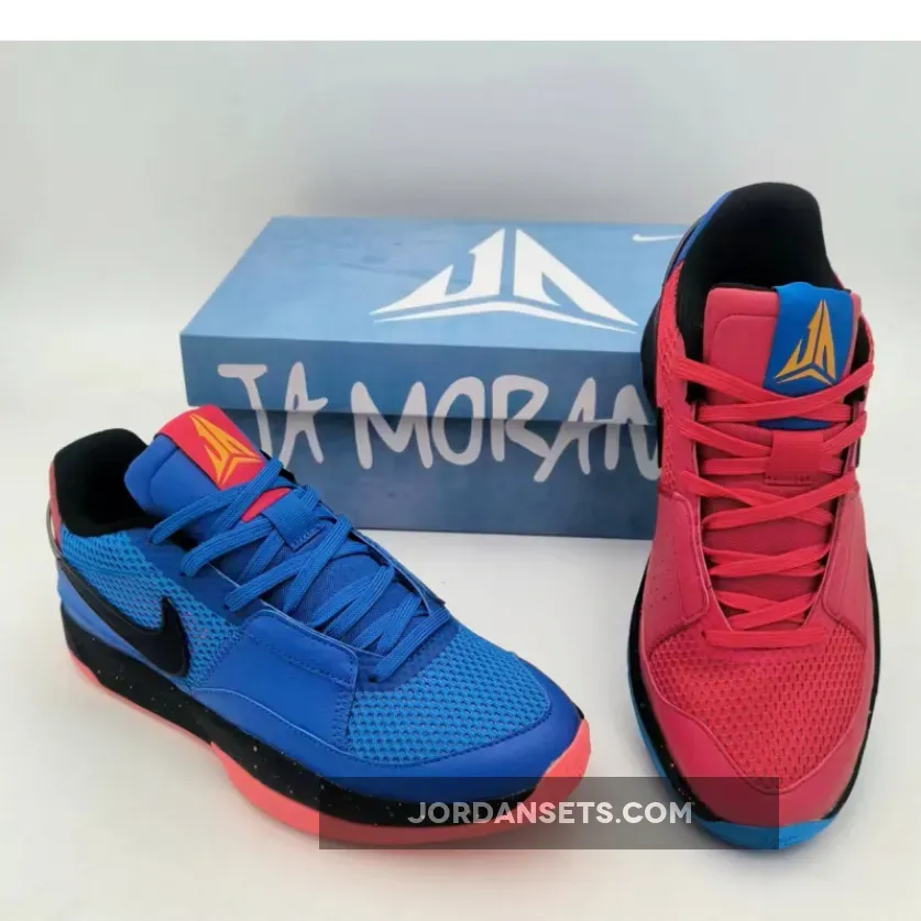 Dressed in a Game Royal, Black, University Red, Photo Blue, Bright Crimson, and Vivid Orange color scheme. This offering of the Nike Ja 1 comes with a mismatch design using Game Royal and University Red on each pair. It features a mesh build with a reinforced midfoot and wrap-around Swooshes.