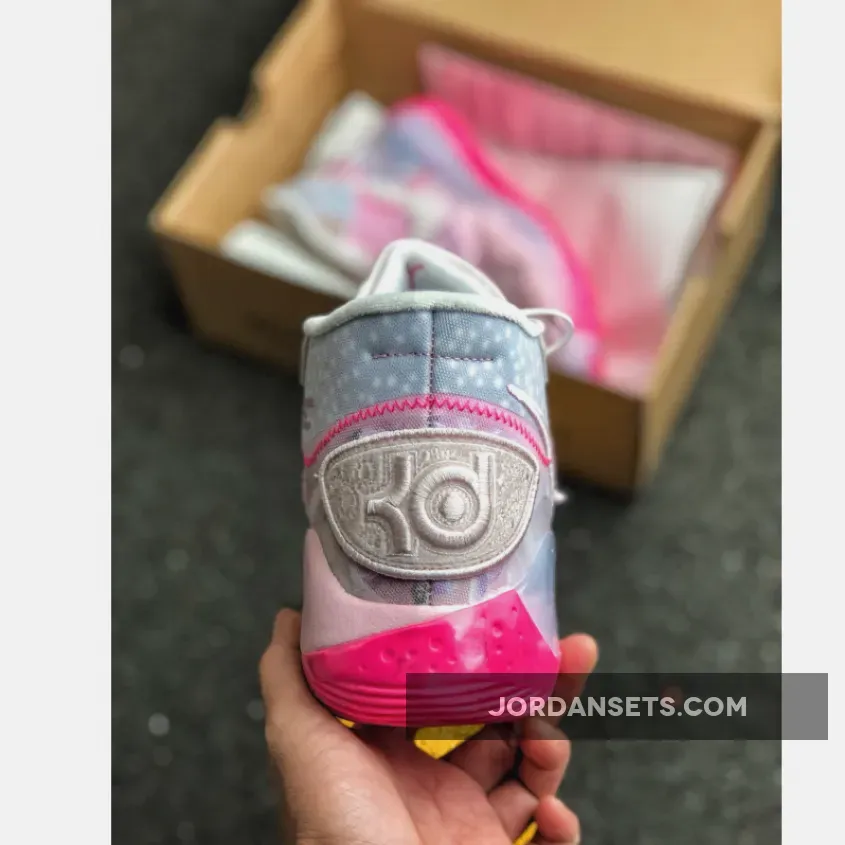 The KD VI Aunt Pearl pays tribute to KD’s aunt with a pink floral pattern on the upper and highlights of blue with subtle pearls. The floral motif on the shoe is similar to the pattern on a robe that Aunt Pearl often wore.