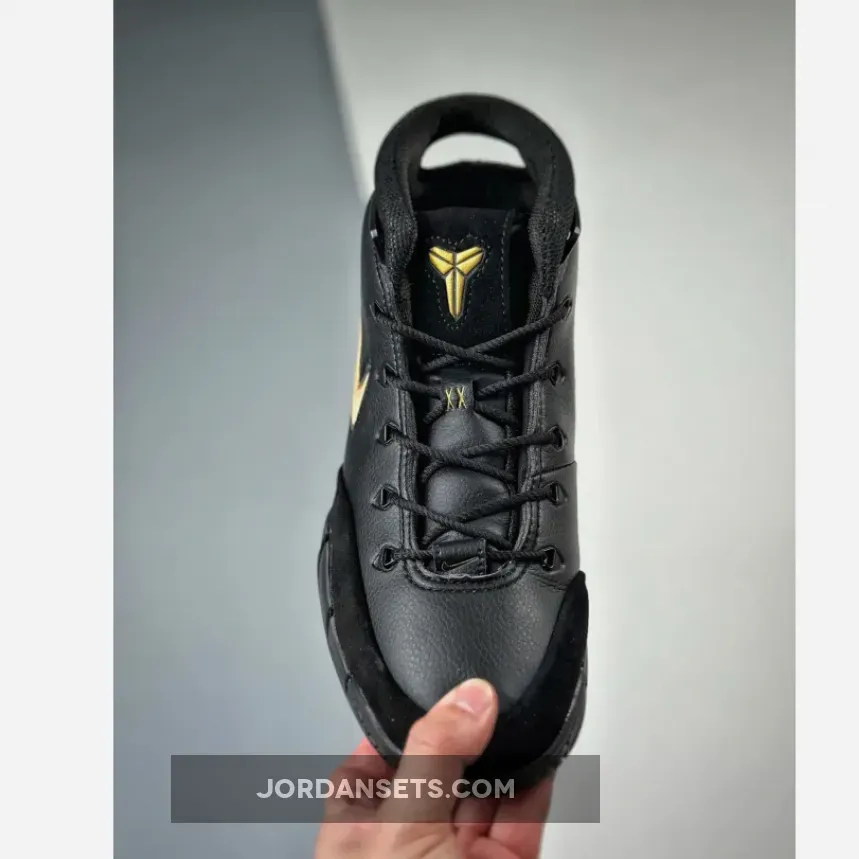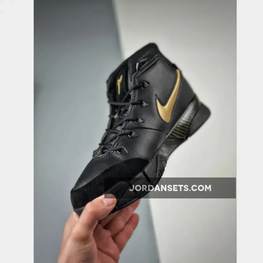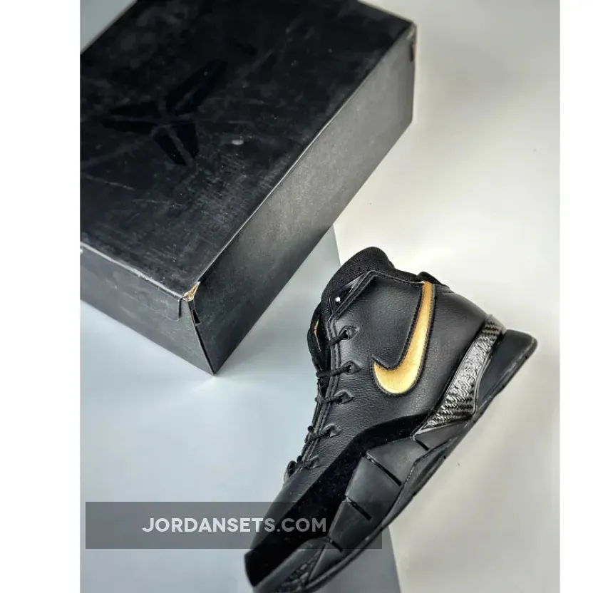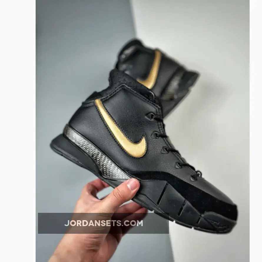 Dressed in a Black, White, and Metallic Gold color scheme. This Nike Zoom Kobe 1 Protro features a Black leather upper paired with Gold contrasting accents. A premium suede overlay on the toe, tongue and heel, along with references to Kobe Bryant’s legacy completes the design.