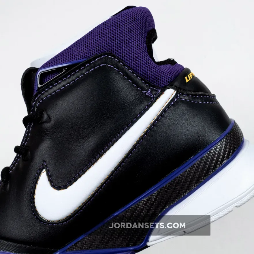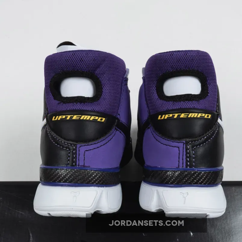 This Nike Kobe 1 Protro features a Black and Purple upper with White appearing on the Swoosh logo and outsole. Completing the Lakers theme are Yellow hints on the Swoosh above the toe as well as on the heels.