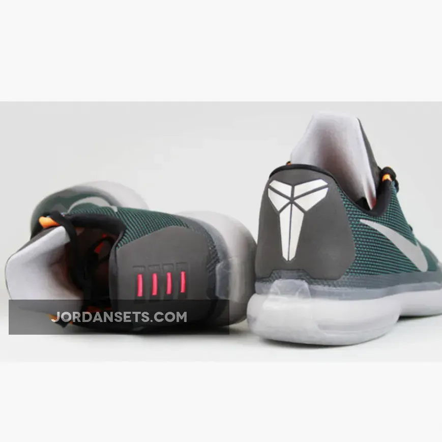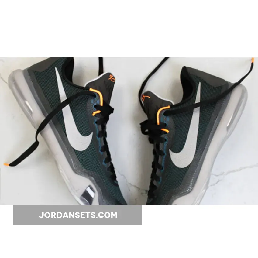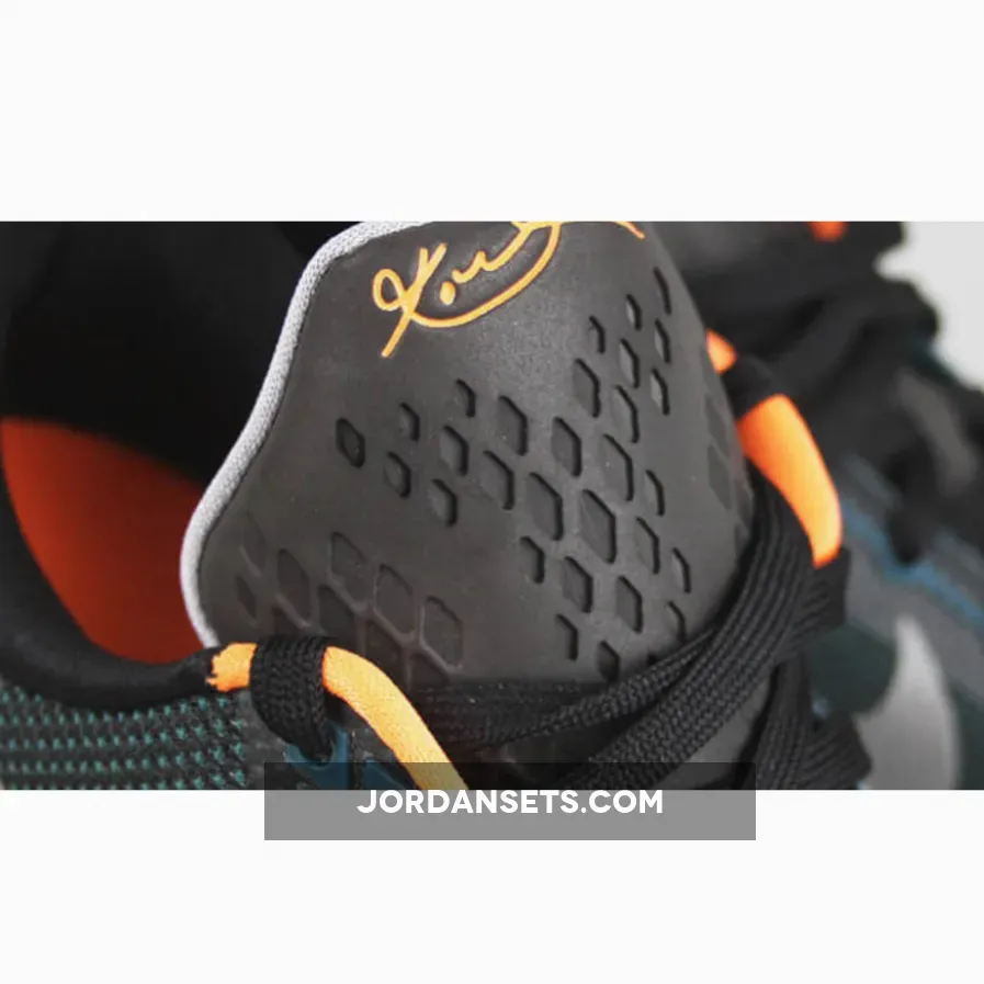 This “Flight” edition of the Nike Kobe 10 is dressed in a Teal, Black, and Bright Citrus color scheme. The shoe features a full Black seamless textile upper, with Teal hints around the eyelets and 3M Reflective detailing on the tongue, Nike Swoosh logos and back heel.