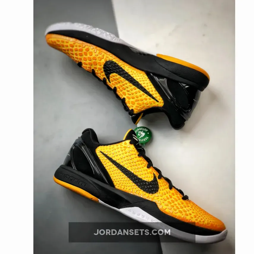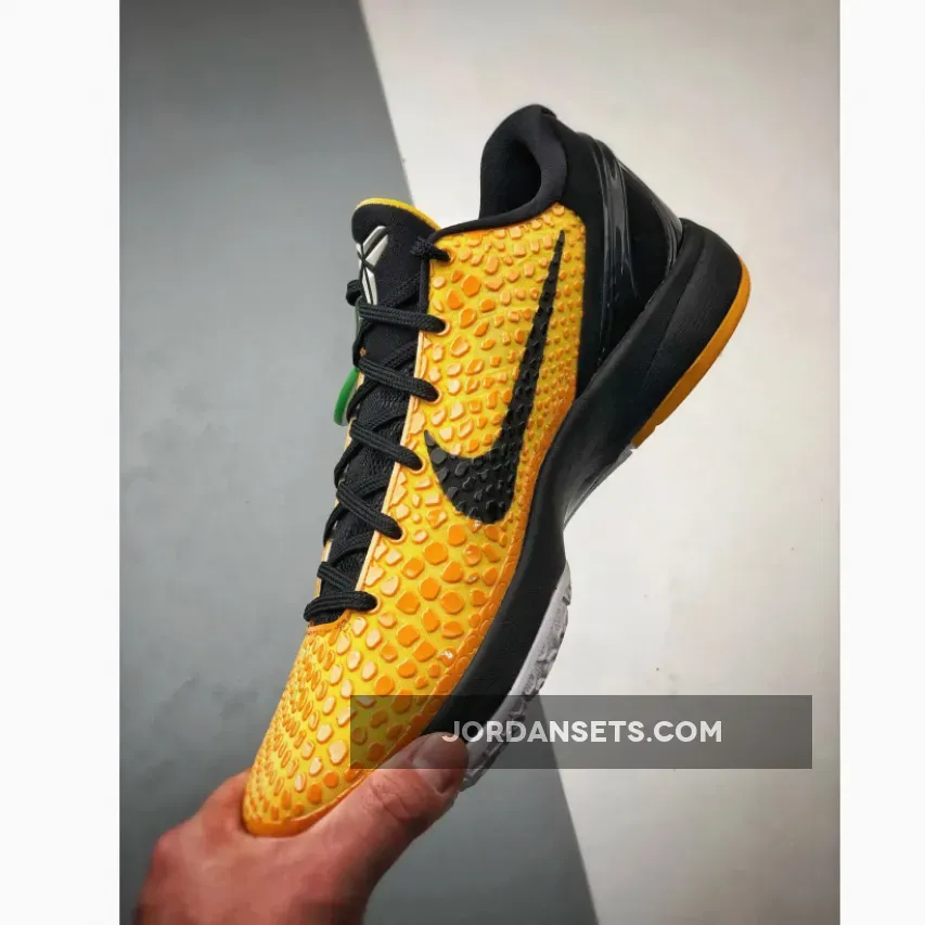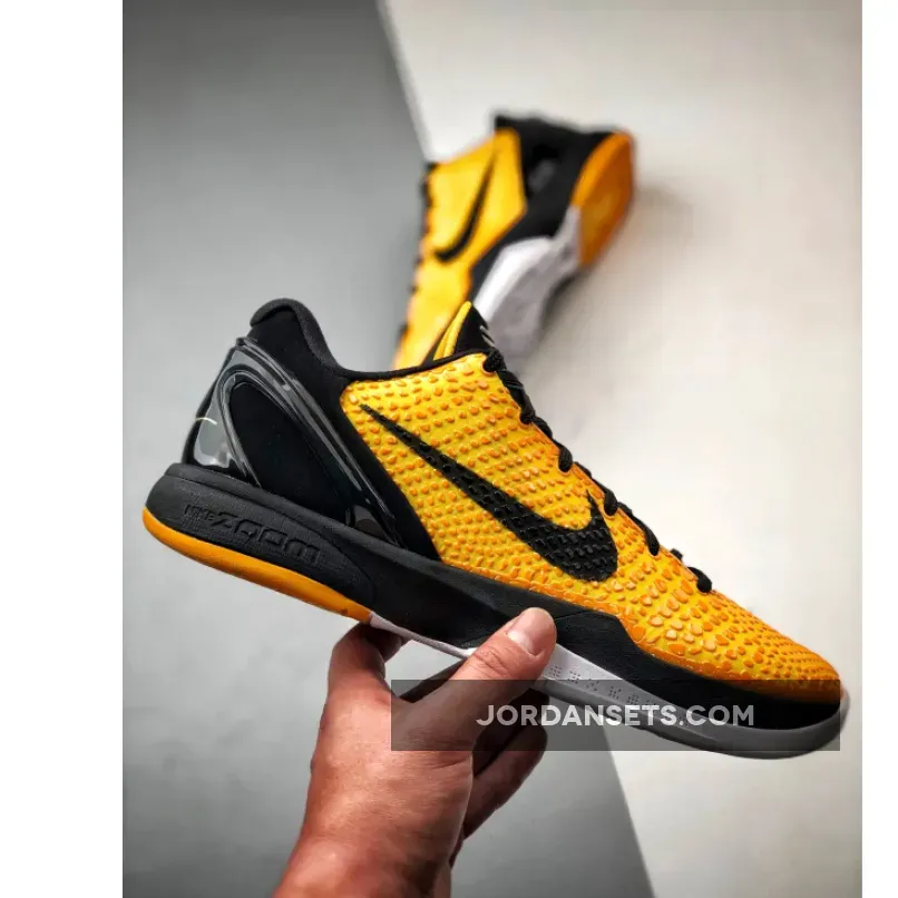 Part of the Zoom Kobe VI Playoff Pack, this pair features a yellow upper with black working the tongue, inner liner, heel and Swoosh logos. The midsole is also done in black, while white takes care of the Shozoku, rear signature and a healthy portion of the outsole.