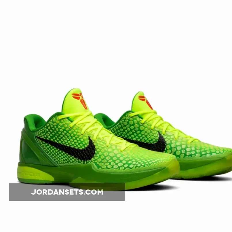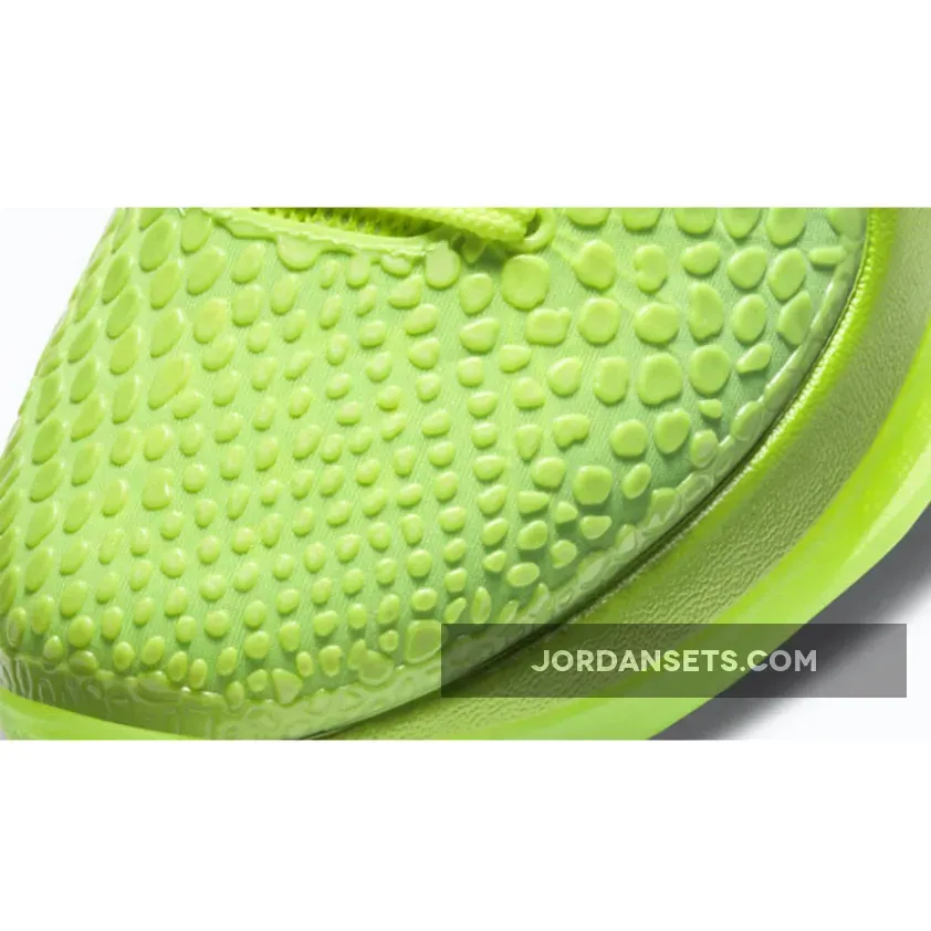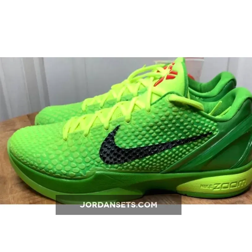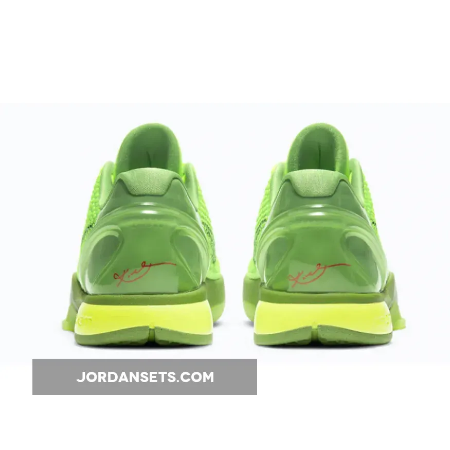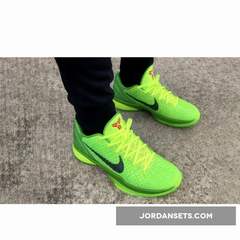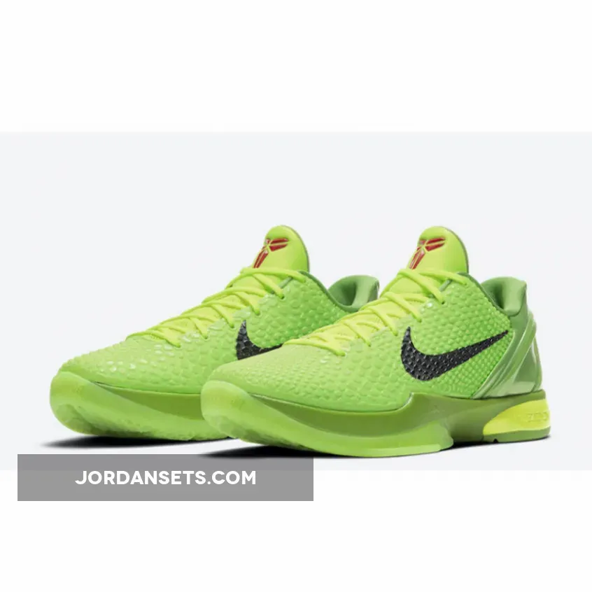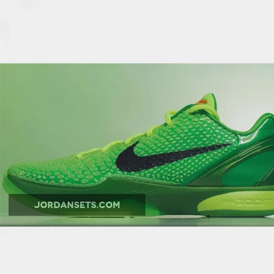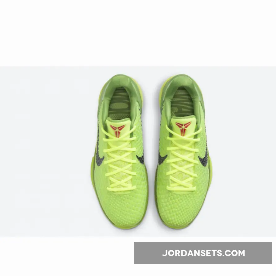 The anticipated drop of Nike Kobe 6 Grinch resurfaces in the same colorway as the OG pair that initially launched in 2010 and full-fledged Kobe fans, ballers, and sneakerheads just cannot wait any longer for its release date.The forthcoming release of this silhouette is nothing more than a perfect reissue of the iconic Grinch colour scheme. While the pair tightly embrace a colour combination of green apple, volt, crimson and black for a pop of contrast, a closer look shows the upper exhibiting a series of pattern that very much represents the skin of a mamba snake which nods to the legendary basketball player’s assassin like movement on the court.Though the pair is set to arrive laced with a matching hue to the silhouette, an extra pair of red laces have been taken into account as an option to maintain the OG vibes Kobe had on his feet and most especially to match the symbolic Mamba logo on the tongue. Finishing the look is Nike’s distinctive Swoosh branding on its lateral and medial sides.