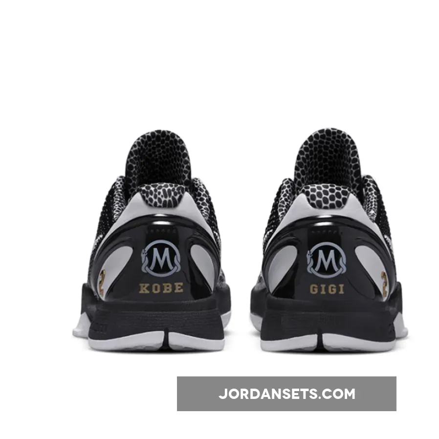 The Nike Kobe 6 Protro ‘Mambacita Sweet Sixteen’ pays tribute to Kobe Bryant and his daughter Gigi. Black snake scales on the upper reference Bryant’s Black Mamba alter ego. Notes of white appear on the Swoosh, tongue logo and leather back panels. The heel mold swaps out the traditional Kobe signature for the Mamba & Mambacita Sports Foundation crest, with