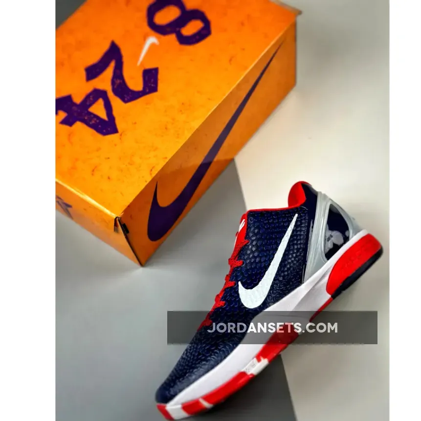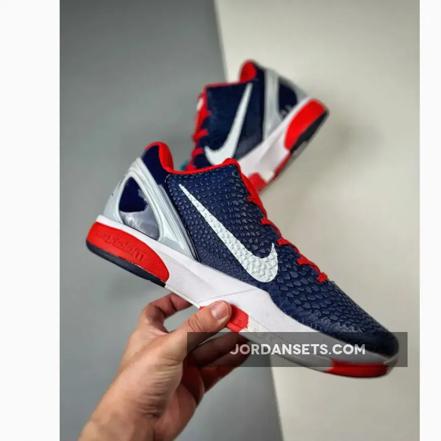 Home and away colorways have been unveiled, both of which bear the traditional patriotic motif. The first pair comes treated with white scaly uppers and smooth leather rear panels and features deep navy Swooshes and interior liners. Striking red accents top off the tongues, laces and heel cages. Its counterpart is essentially styled in reversed fashion. Scale-covered parts of the base are treated with a USA-friendly navy hue while the Swooshes and cages are filled in with angelic finishes. Tongues and laces are consistent and usher in splashes of red. Both offerings feature camo graphics across the outsoles for extra flair.