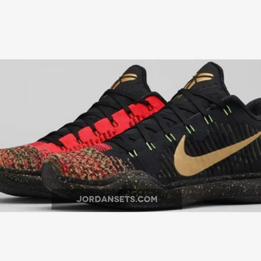 Released in December 2015, the Nike Kobe 10 Elite Low ‘Christmas’ comes dressed in a Bright Crimson and black Flyknit upper with a metallic gold Swoosh. The shoe also features five championship rings on the heel, and a basketball within a compass stitched inside the tongue. For the Nike Vault release in Los Angeles, the Nike Kobe 10 Elite Low ‘Christmas’ arrived with special gold packaging lined in red and five branded hang tags.