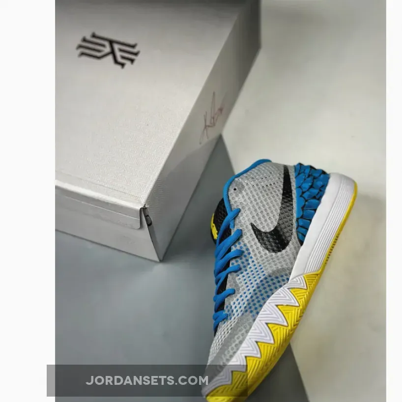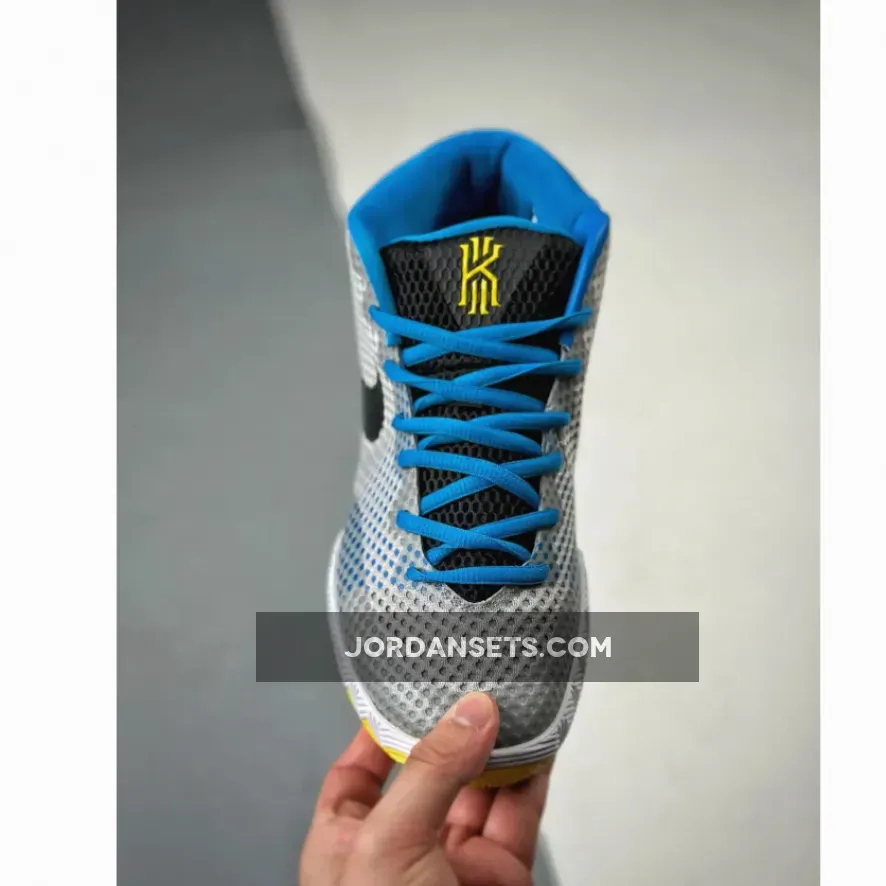 This edition of the Nike Kyrie 1 is dressed in a White, Black, Light Voltage Yellow, Light Photo Blue, and Metallic Silver color scheme. The mesh uppers take on metallic silver with blue landing around the heel counter, laces and liner. Hits of yellow are seen on the outsole and KI logo placed on the tongue while black fills in the swoosh and tongue. Flaunting eagle graphics inspired by one of Irving’s early teams, the bird symbolizes Irving’s high scoring capabilities with a soft touch. Finally white is used on the midsole.