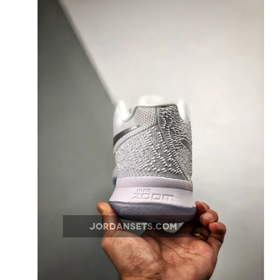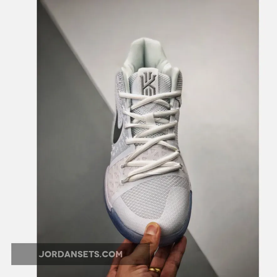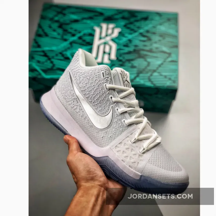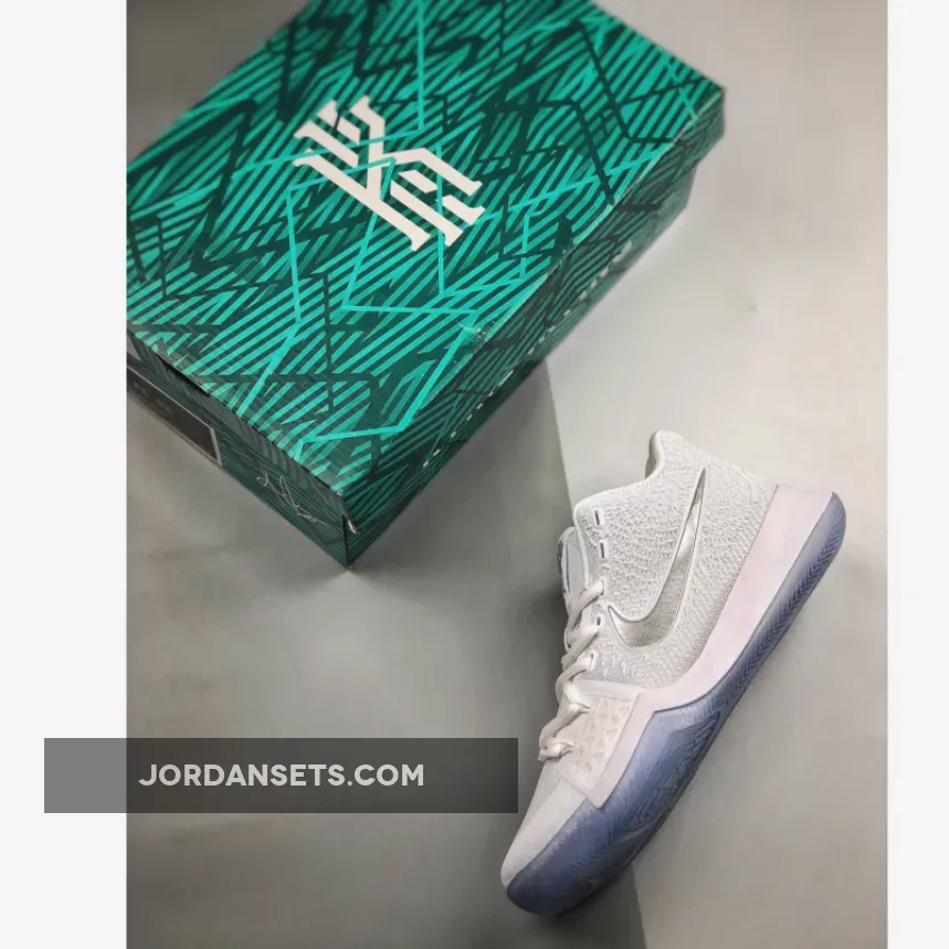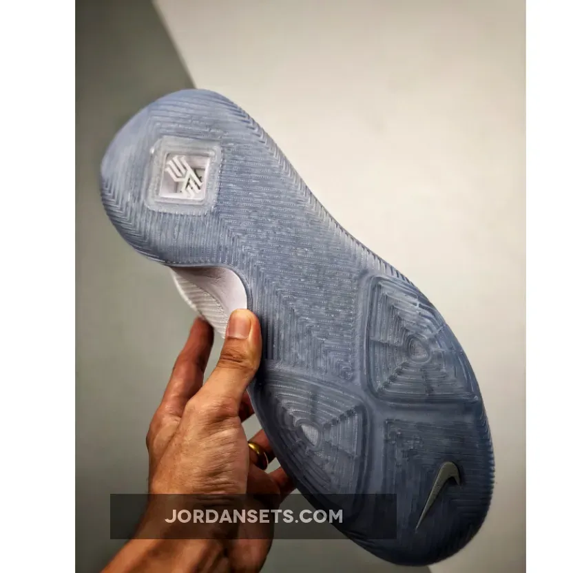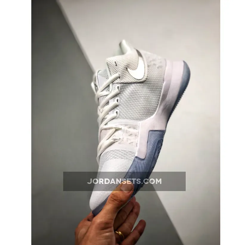 Featuring a crisp White mesh upper that’s accented in Chrome on the Nike Swoosh logos and Kyrie branded tongues. Finishing off the design is an icy translucent outsole.