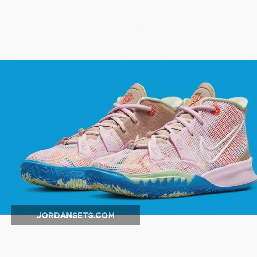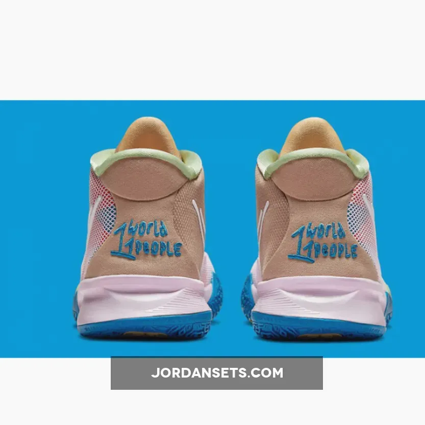 This offering of the Nike Kyrie 7 comes dressed in a mix of colors with Pink and Tan being the most dominate tones throughout the shoe. Some of the key details includes heart, peace, all-seeing eye and basketball logos on the lower eyestays of both lateral and medial sides. “1 World 1 People” is branded on the heels that also comes with a stencil pack in a special edition branded shoe box.
