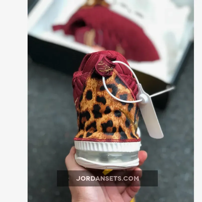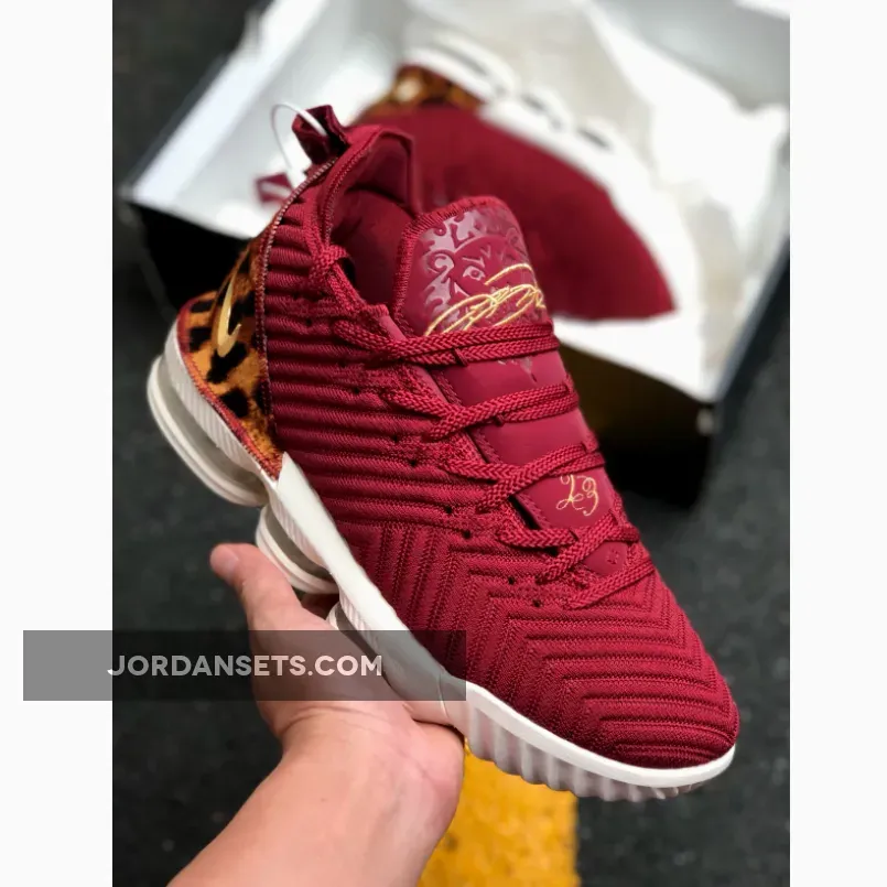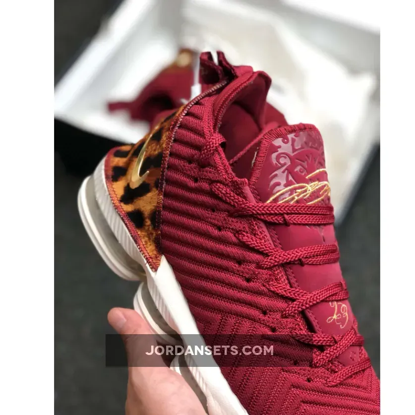 This Nike LeBron 16 is a nod to the small forward position, which is part of Nike’s “1 Thru 5” Collection. It features a Red Battleknit upper with leopard print heels that pays homage to a classic Air Zoom Generation ad campaign during his early career. That same photo is used on the insoles, along with Metallic Gold accents on the Swoosh, heel tab, and tongue.
