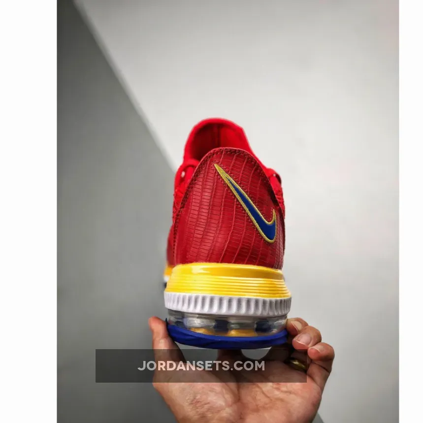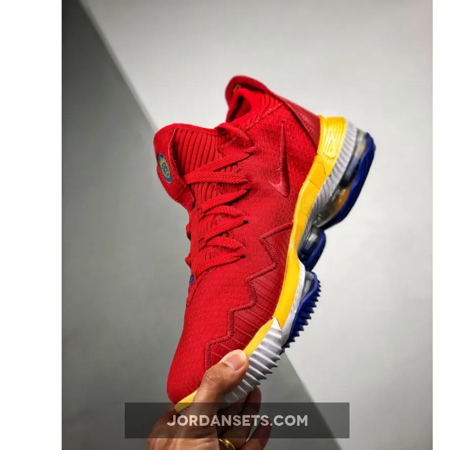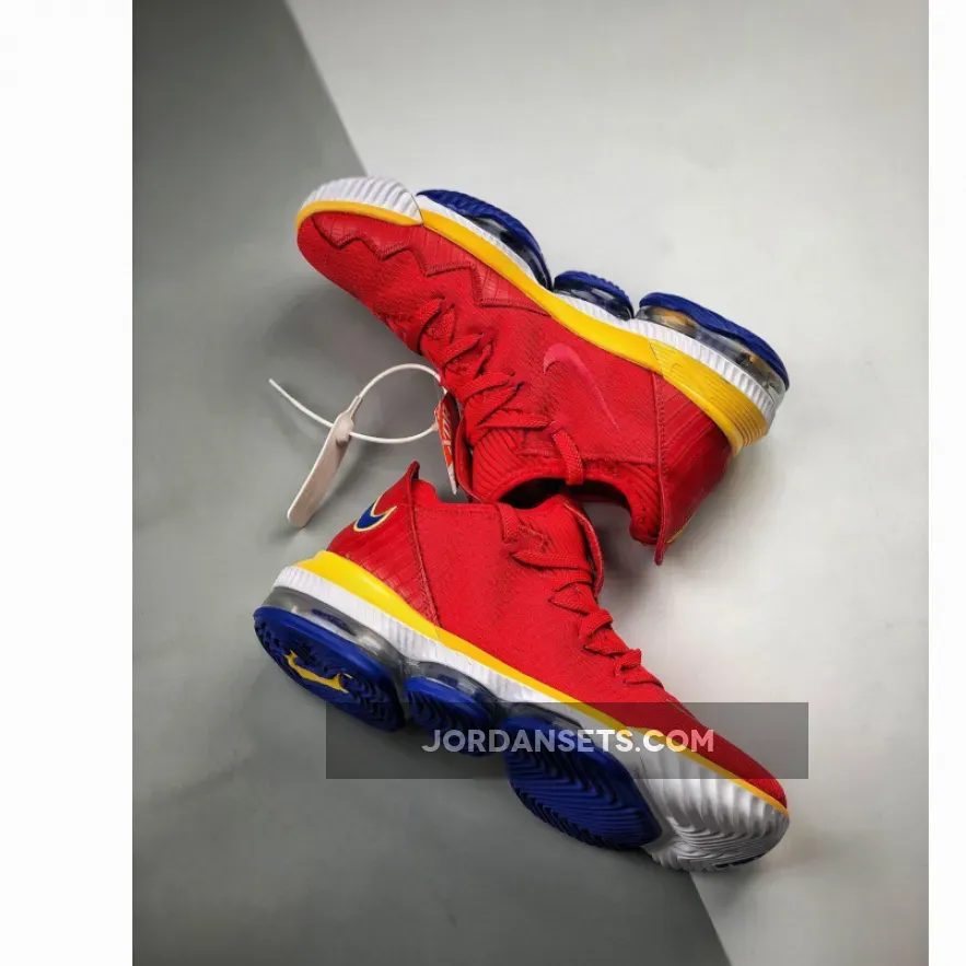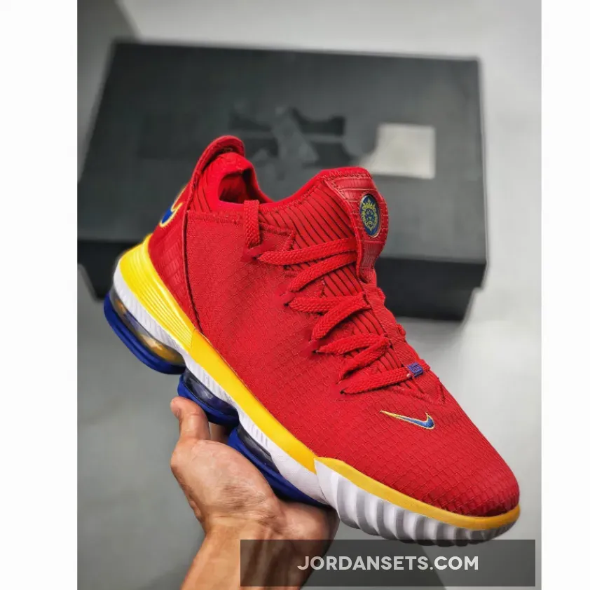 This Superman-themed release features a Red textile upper with Yellow accents used on the outlined Swoosh logos and midsole. Blue detailing colors in the Swoosh logos and other branded areas also spotted on its insole and rubber outsole. A White midsole and OG-style lion logo on the tongues completes the design.