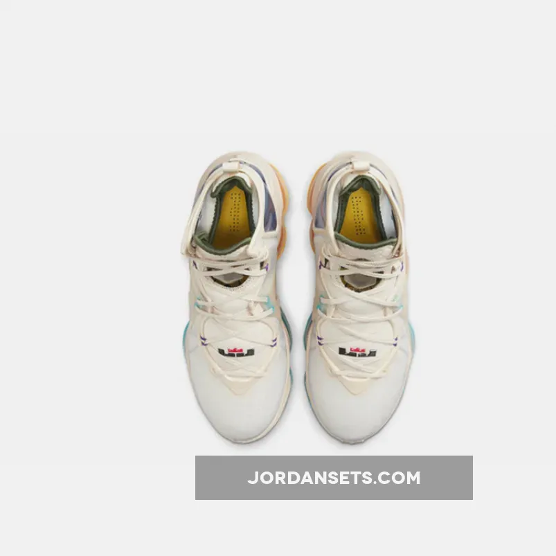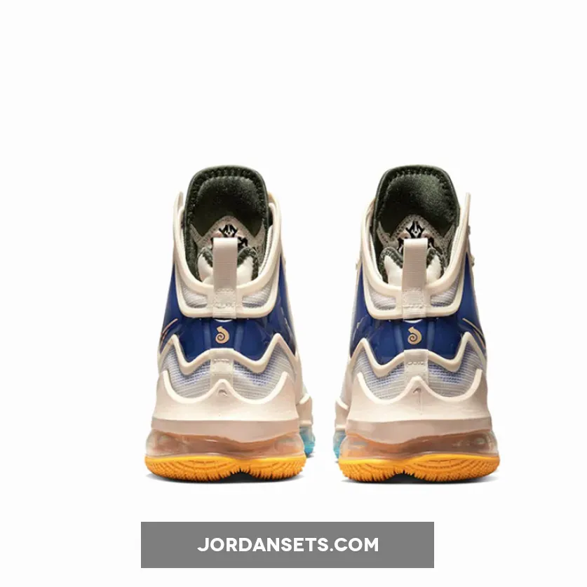 The Nike LeBron 19 is revealed in another colorway, this time in a stylish finish that may be inspired by the ’50s Minneapolis Lakers uniforms via its two-tone University Blue and Gold rubber outsole. Flaunting a tan/cream hue across its textile upper with molded TPU overlays, the silhouette is contrasted by teal and purple accents via the integrated Flywire cables, as well as the addition of the King James crown logo on the tongue and other markings on the heel. Finally, the distinct forefoot Zoom Air unit with dual-chambered Max Air under the heel rounds out the profile.