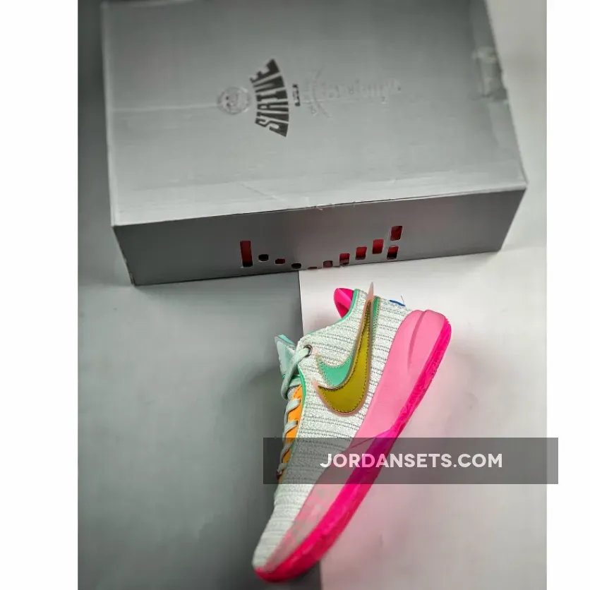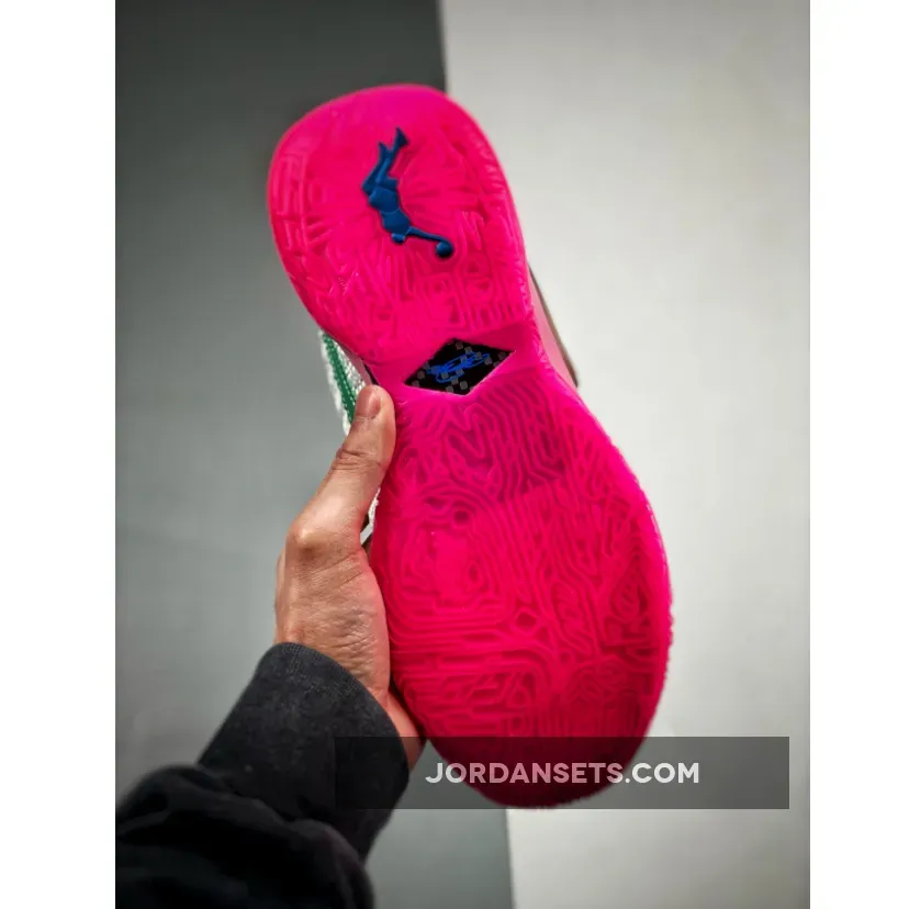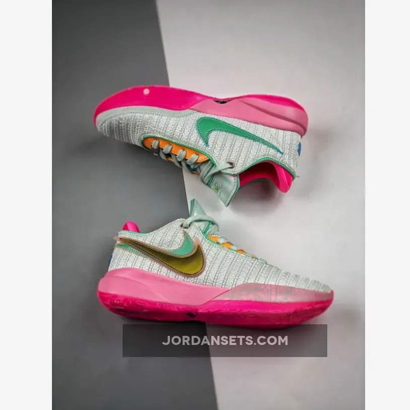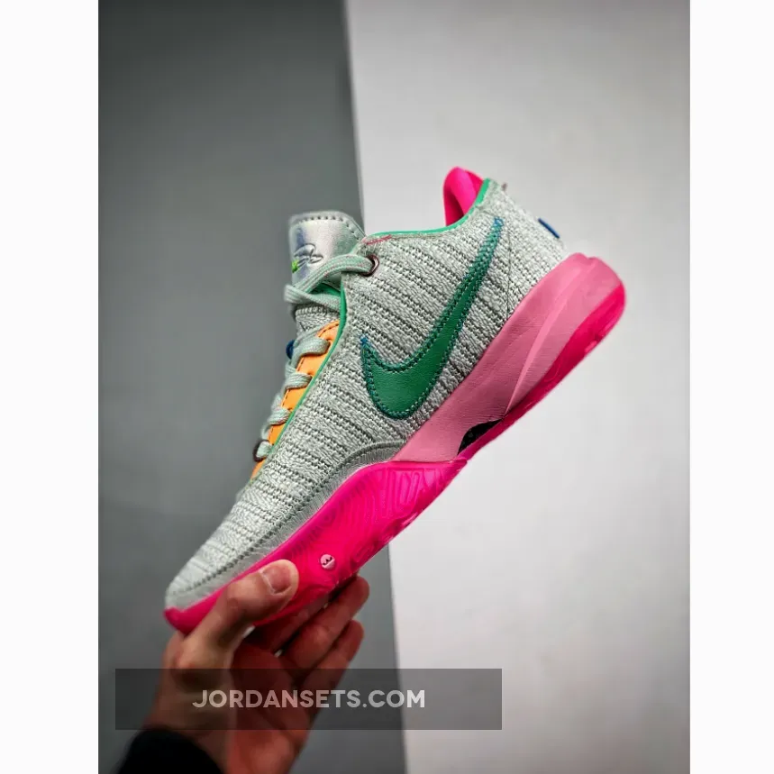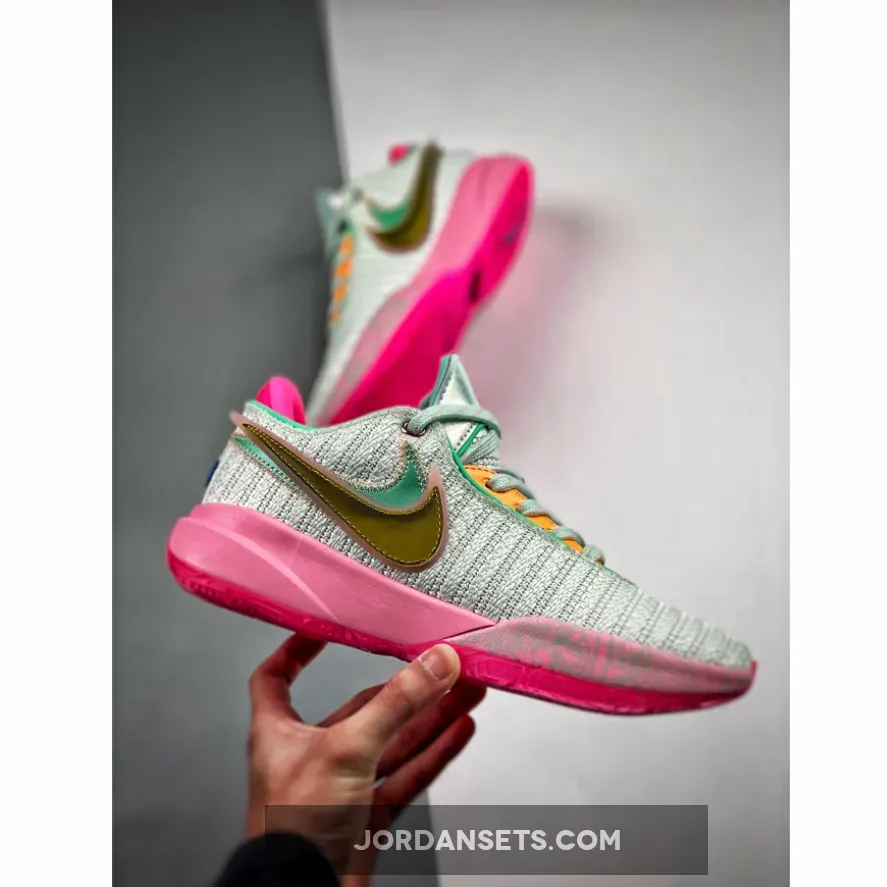 The 19-year-old Nike LeBron silhouette is going strong. This basketball shoe named after the Los Angeles Lakers’ James LeBron has just dropped a vibrant new colourway. Meet the Nike LeBron 20 Barely Green Multi. This LeBron 20’s upper is wrapped in a minty Barely Green woven Battleknit material matched with a peach-coloured eye stay panel, a Medium Soft Pink plush sock liner, and double Swooshes on the lateral side, featuring a Barely Green Swoosh and an opalescent-finish Swoosh. This colour combination is a nod to LeBron’s roots in South Beach, Miami. Metallic pink double “X” lace deubrés adorn the vamp area.