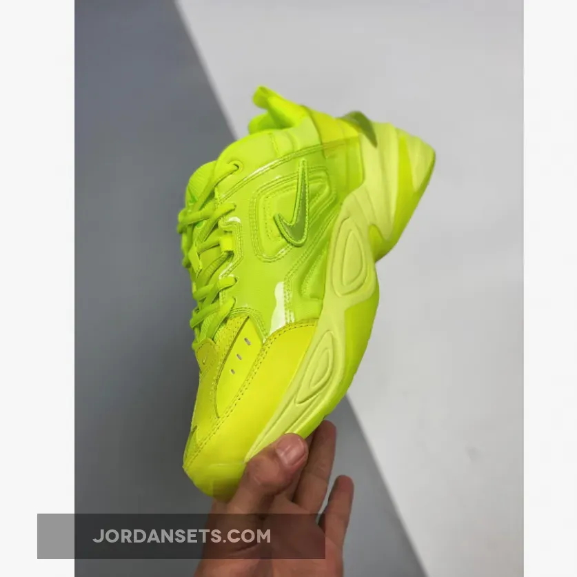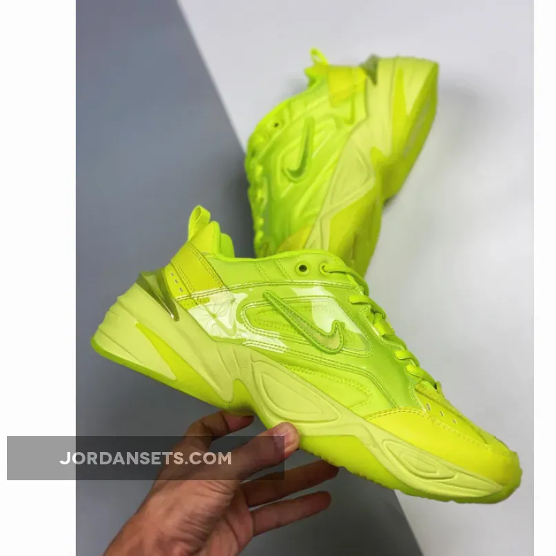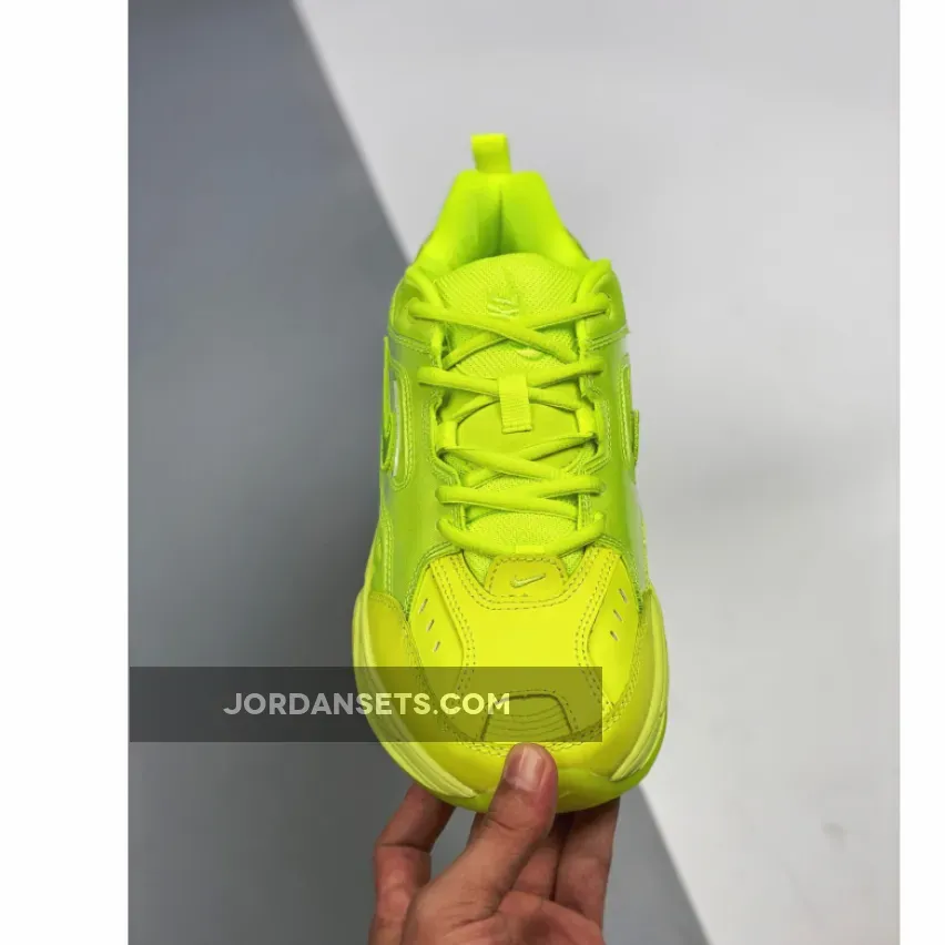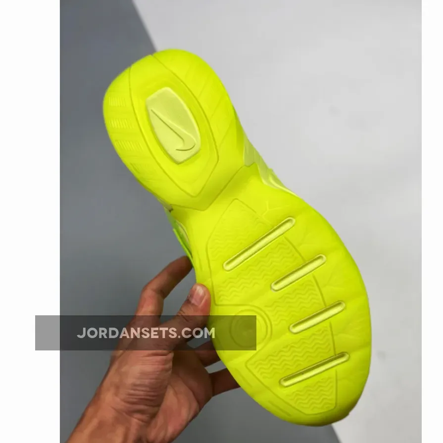 This iteration of the shoe is arriving in the brightest colorway of the silhouette yet. It features a Volt covering its entire upper that’s built with a mix of leather, nylon, and mesh.