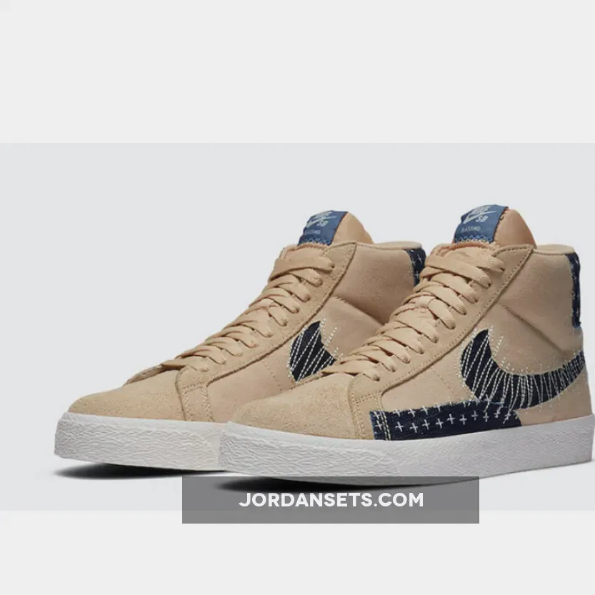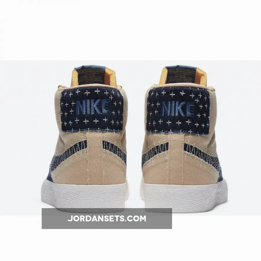 Sashiko, which literally translates to “little stabs,” is a form of decorative reinforcement stitching that originated in Japan around 400 years ago. This offering of the Nike SB Blazer Mid features a Sesame base with Sail DIY-style paneling covered in Sashiko-style stitching.