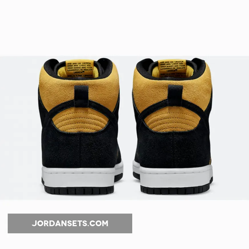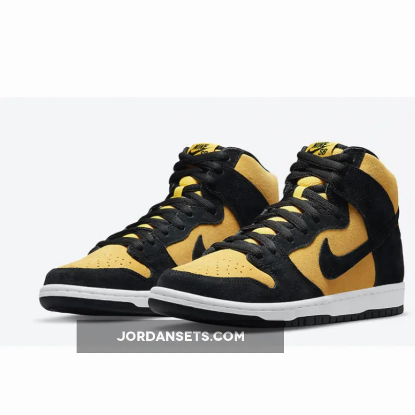 Solid colour scheme on the Nike SB Dunk High Yellow Black. Good quality materials, but UK sizing is a half size smaller. Fast shipping from the UK stockist, arrived in 2 days. Recommend!