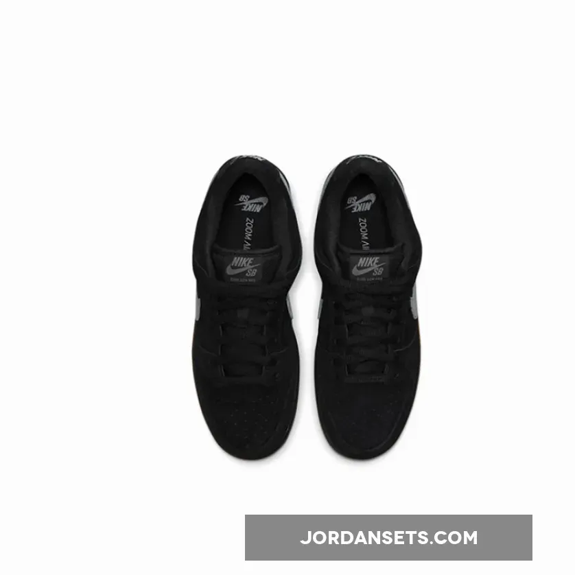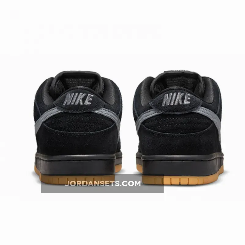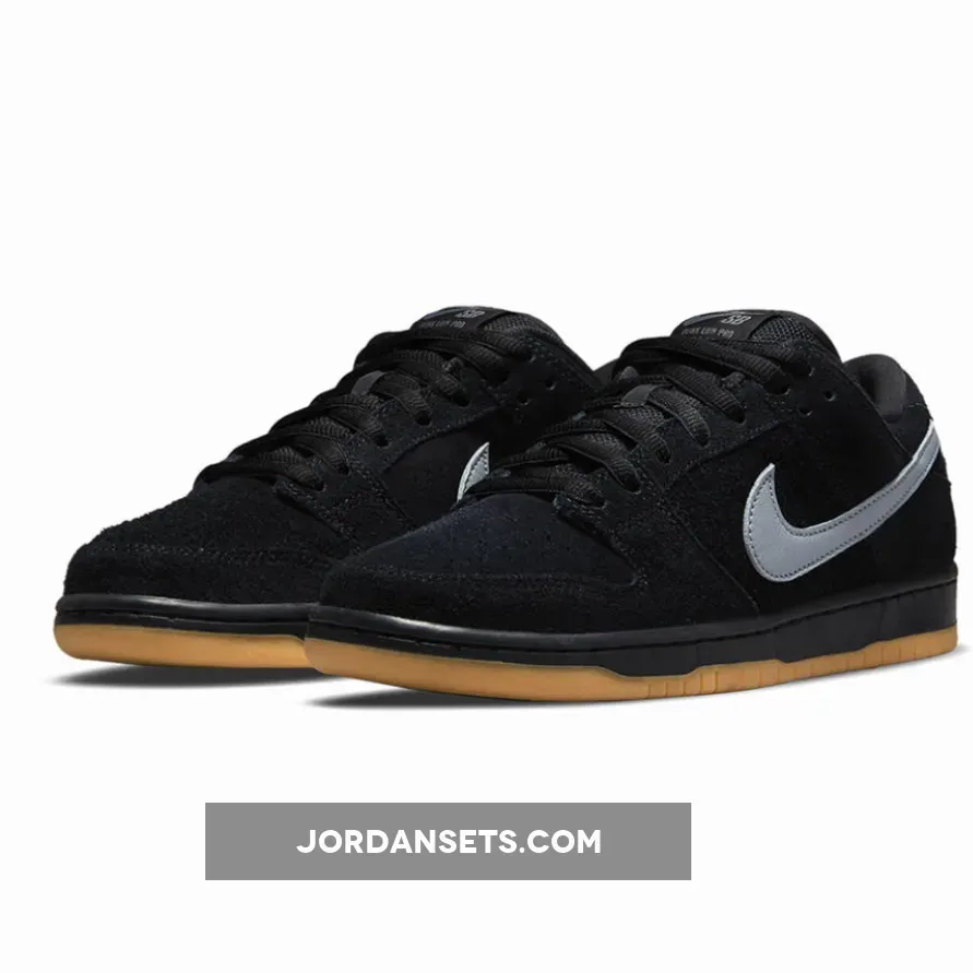 The upper is a fuzzy all-black suede from toe to heel, including the laces and the collar lining. Standing out against this dark backdrop is a profile Swoosh in light grey tumbled leather. This all-black ensemble sits atop a caramel gum outsole, finishing the look. Nike SB branding in light grey is on the tongue tab while a silver Nike text logo is embroidered on the black suede heel tab. Use our Nike Dunk size guide to know how it fits.
