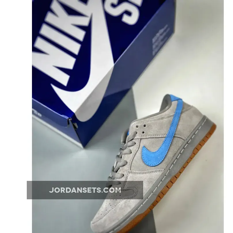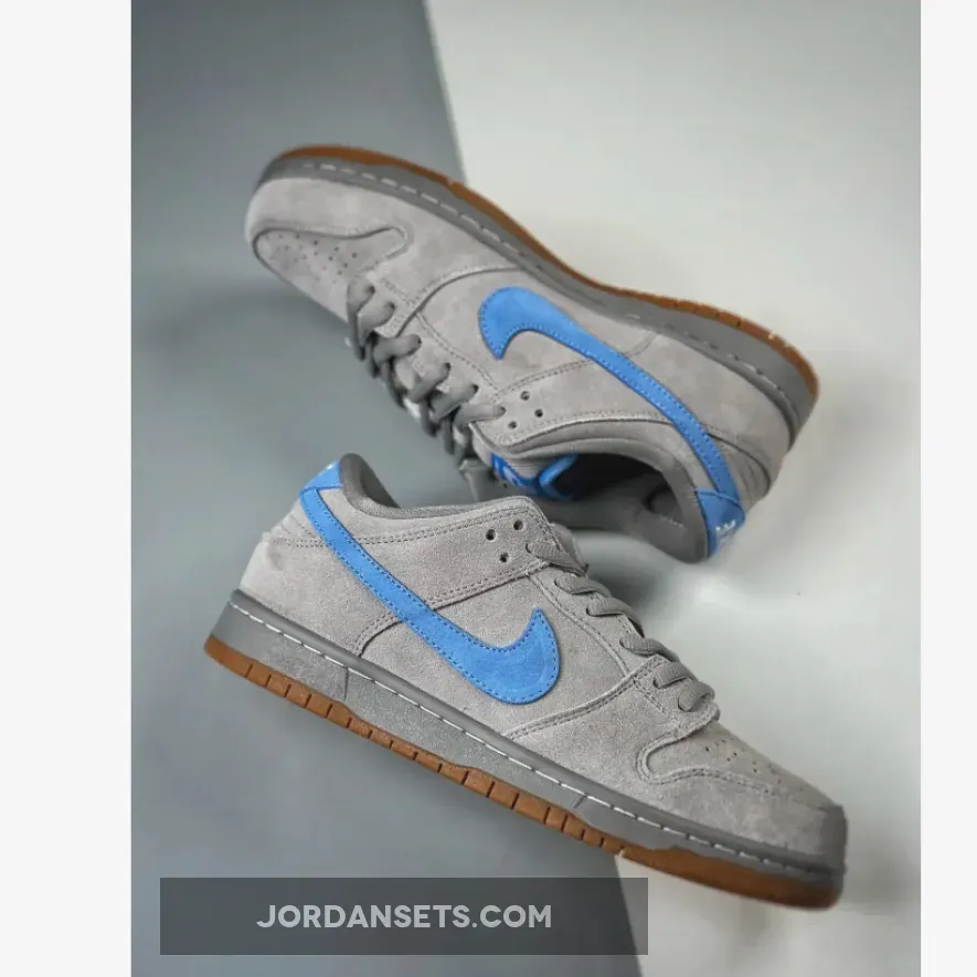 This pair of Nike SB Dunk Low Pro is subtle but definitely worth getting your hands on. The shoes feature a medium grey suede construction, along with mesh on the oversized tongue. Contrasting the grey hue are university blue accents, which are visible on the tongue tag, heel, and Nike swoosh. Completing the look is a gum rubber sole, a feature often seen on Nike SB shoes.