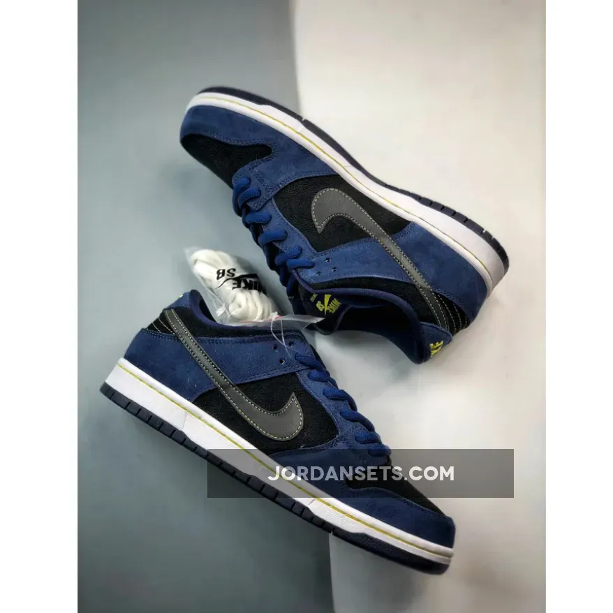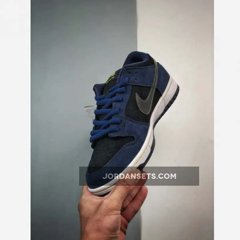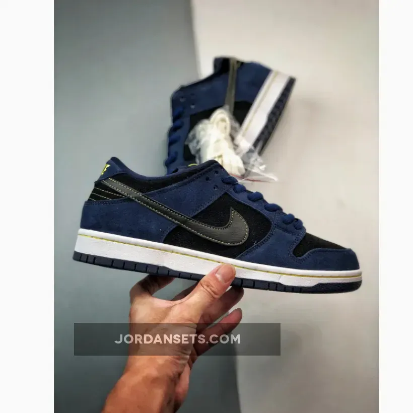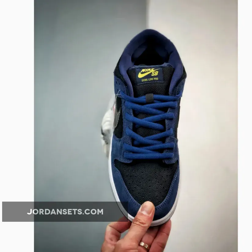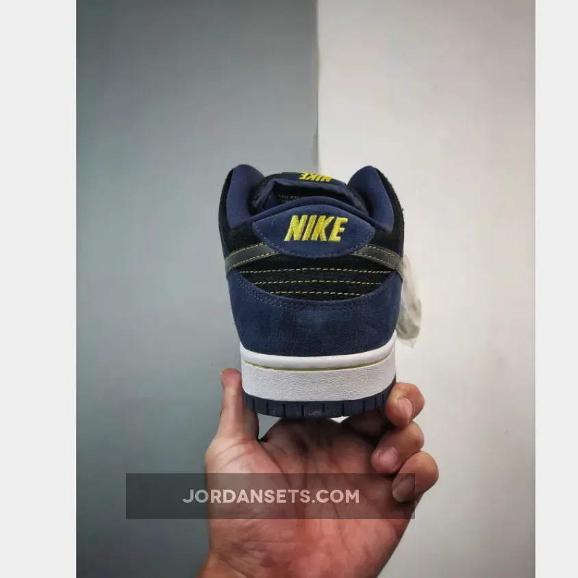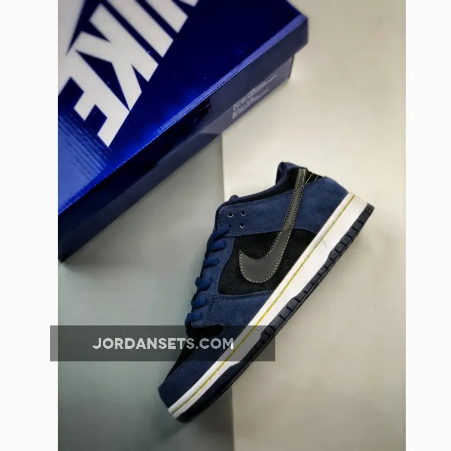 This Nike SB introduce the Dunk Low Pro Midnight Navy/Black in an understated pebbled leather composition. Opposite its patterned leather panels, Midnight Navy suede, yellow stitchwork and embroidery finish off the colorway.