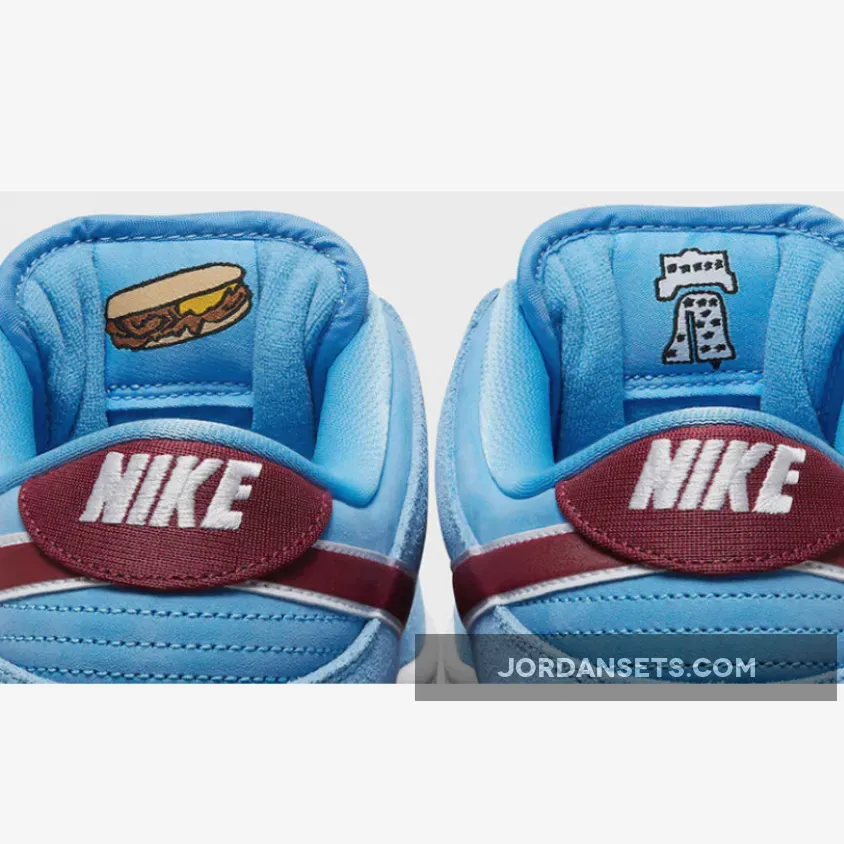 The twenty-year-old Nike SB Dunk Low is paying homage to famous baseball teams. Introducing the Nike SB Dunk Low Phillies. This SB Dunk Low features the Phillies’ signature red, white and blue team colours. The entire upper is covered in University Blue from heel to toe, including the mesh tongue and the laces. The only variation you’ll find is the material. Smooth leather is used for the base while the overlays are a rich suede. The signature profile Swooshes on the medial and lateral sides of the shoe are a striking maroon-like Team Red outlined with white. The same Team Red can be found on the shoe’s heel tab bearing an embroidered white Nike text branding.