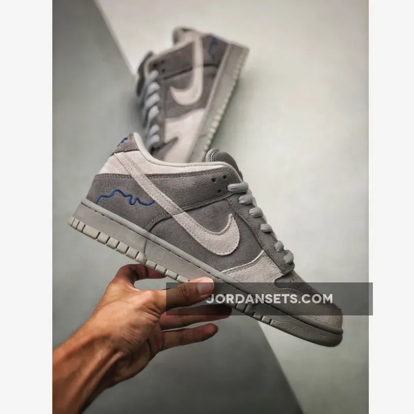 A contrasting gray suede sneaker, the London Dunk was the third sneaker released for the White Dunk art exhibition. It was exclusively released during the show’s London stop, causing crowds to line up. The heel features embroidery of the 200-mile long River Thames