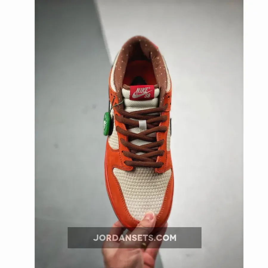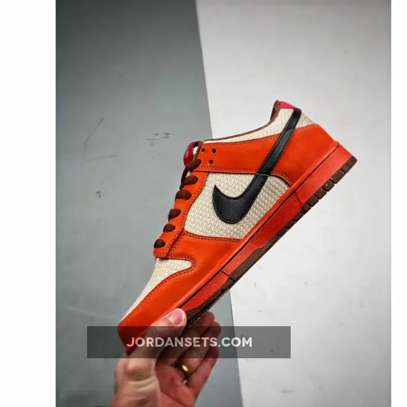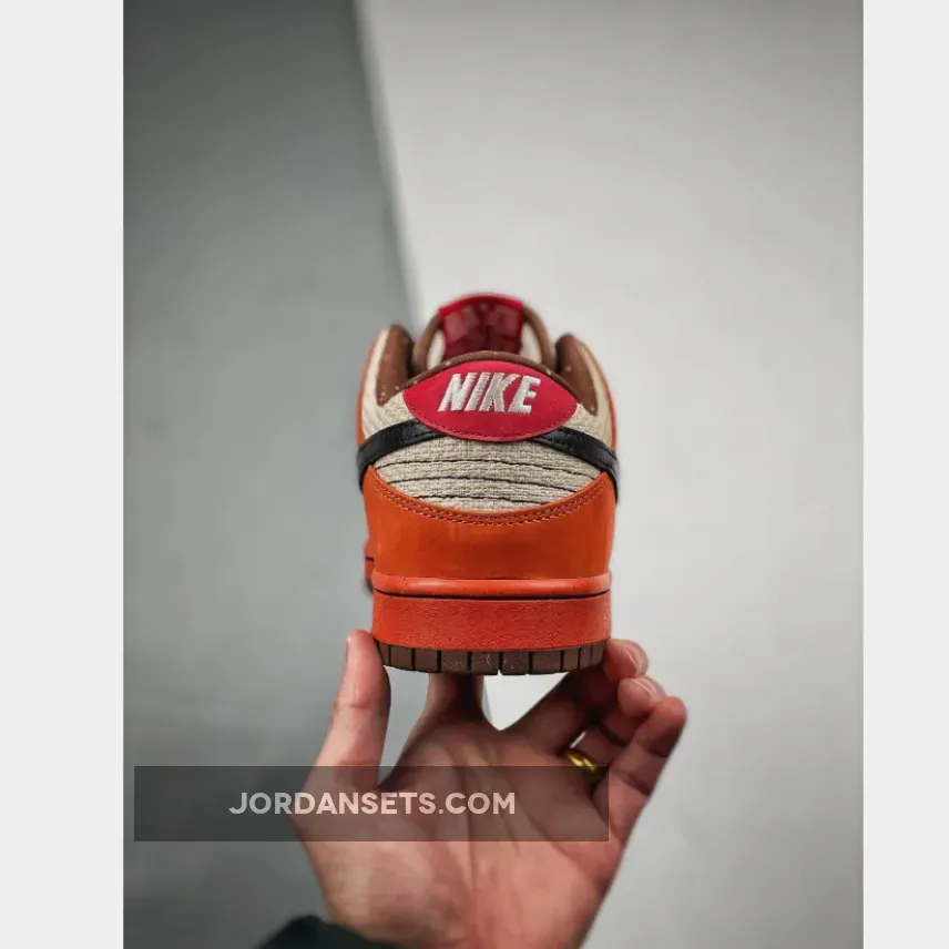 This version gets a little more complicated than the originals, which sported the hemp material on the shoe’s entire upper. This version throws in more additional accent colors and also breaks up the color blocking with a combination of orange suede and hemp on the upper. These kicks also feature an orange midsole, as well as a black Swoosh and some splashes of brown and red on various sections of the shoe, including the spotted lining.