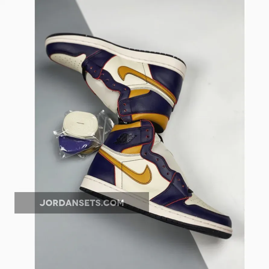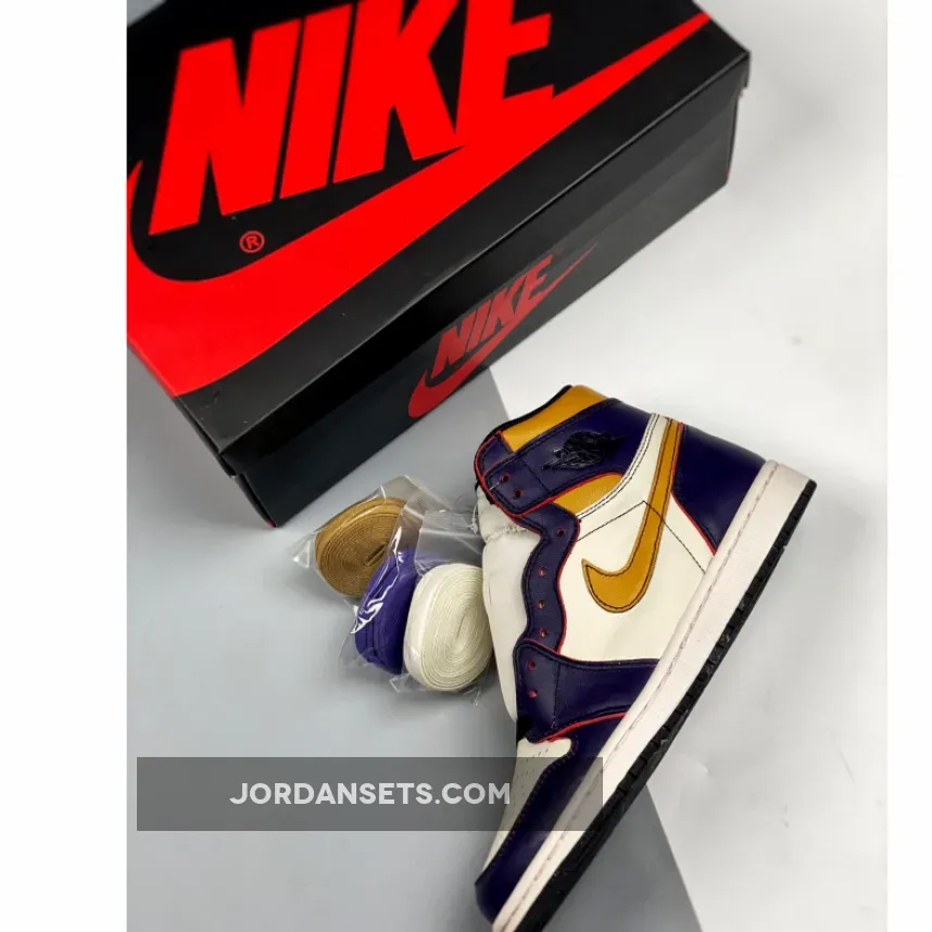This Air Jordan 1 was originally spotted on the feet of Nike SB team rider Theotis Beasley that comes in a Los Angeles Lakers color scheme. It features a White leather toe box and side panels with Purple trimming along the toe, eyelets and heel, and Yellow on the Swoosh logos and collar. Much like previous Nike SB releases, this one will have a wear away design that looks to have a Chicago-like scheme underneath.