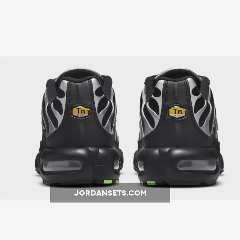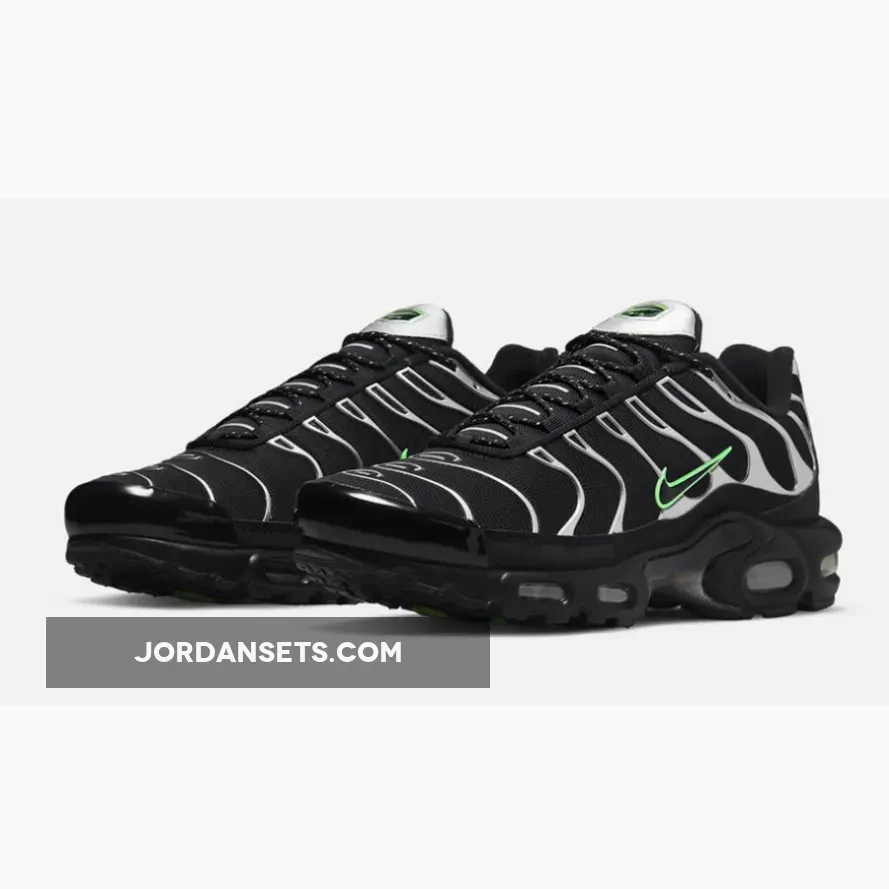 black and green nikes #black and green tns #black and silver air max #nike air max plus silver