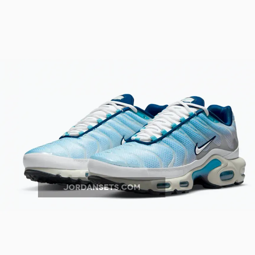 Loving the design of the TN Air Max Plus Blue White Aqua! ? The color scheme is sick, and the gradient mesh upper is ?. Perfect for summer vibes. ? #Nike #Sneakers #NewRelease ?