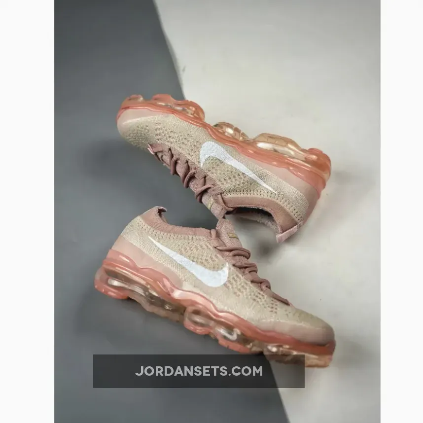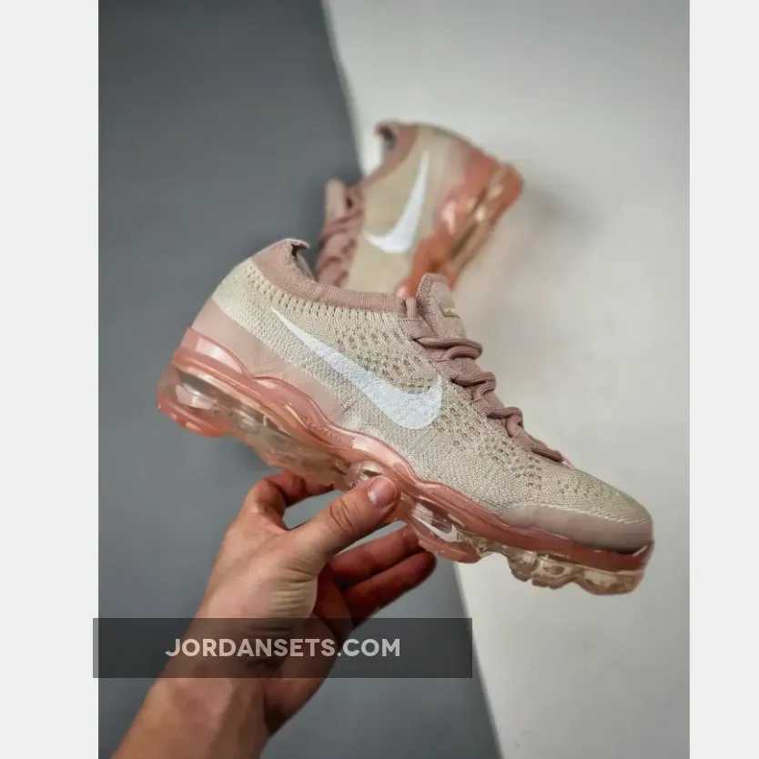 Covered in an official color combination of Oatmeal/Pearl Pink-Pink Oxford-Sail, this Nike Air VaporMax 2023 Flyknit starts off with a versatile Oatmeal hue all throughout the lightweight and breathable Flyknit construction on the upper with White Swooshes on the side panels as well as on the lateral midsole. For that spring look we see Pearl Pink added on the eyestay, collars, tongue, heel tab, and the full-length VaporMax sole unit. Colorful insoles with Nike’s pinwheel logos and VaporMax branding on the tongues and heels wrap up the look on this Nike Air VaporMax 2023 Flyknit
