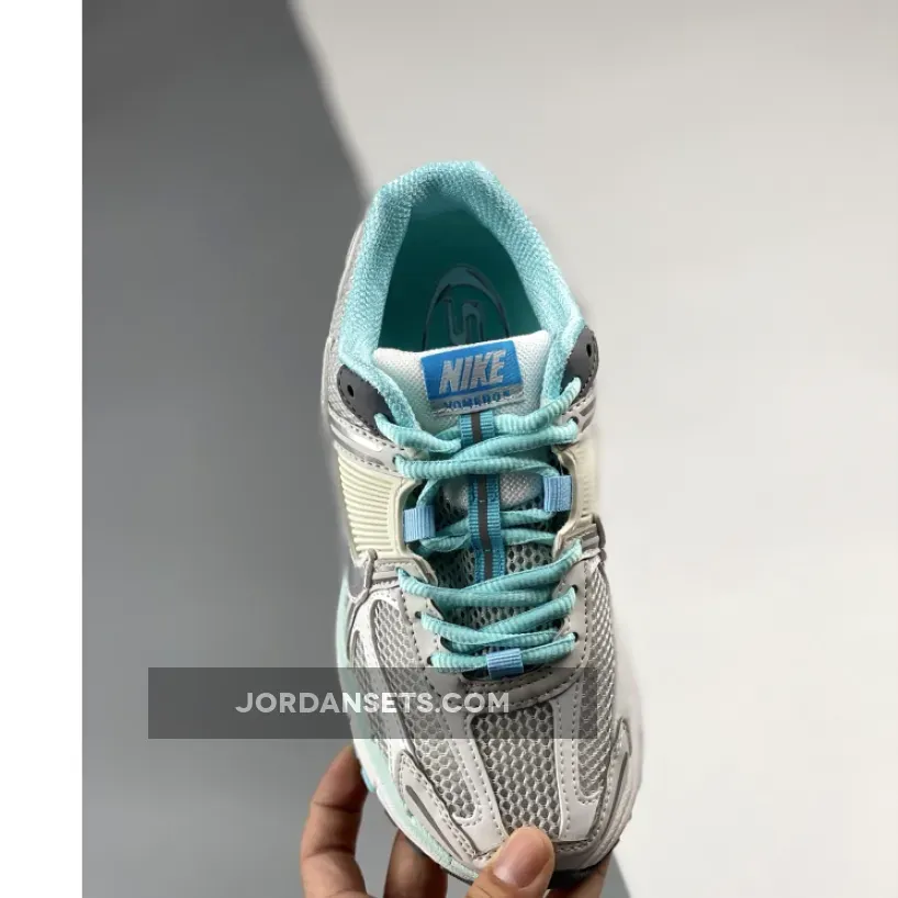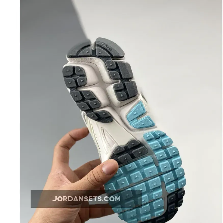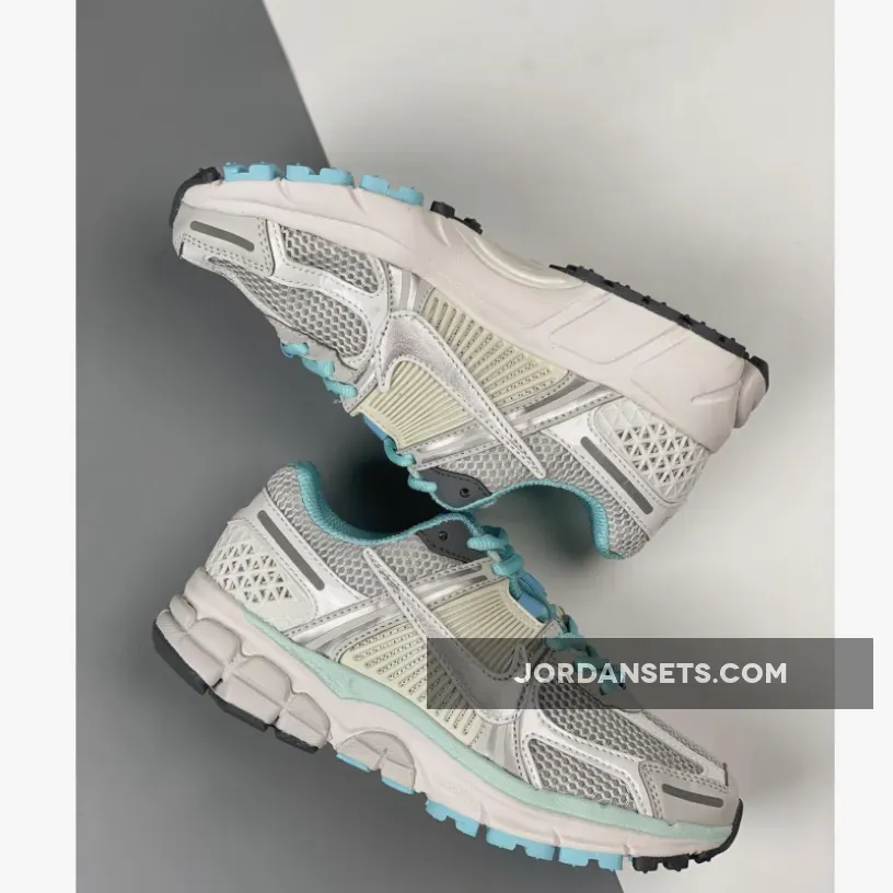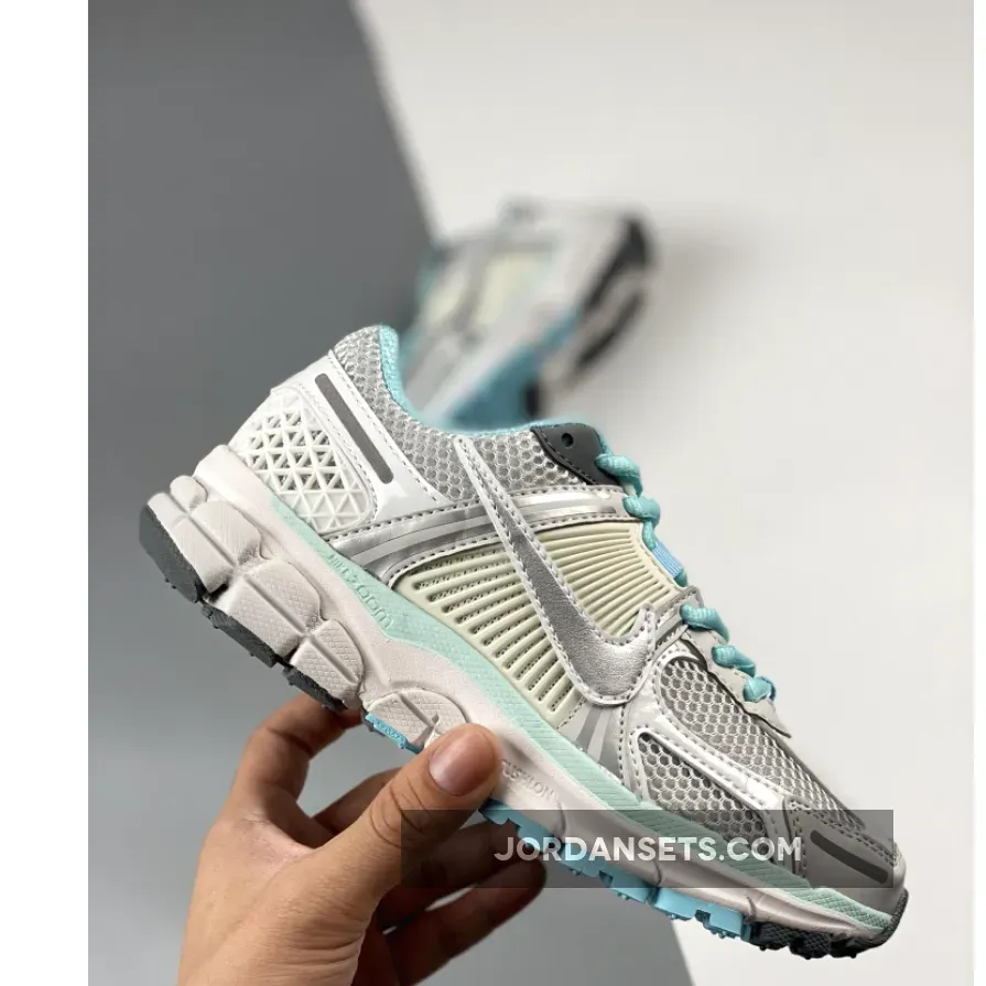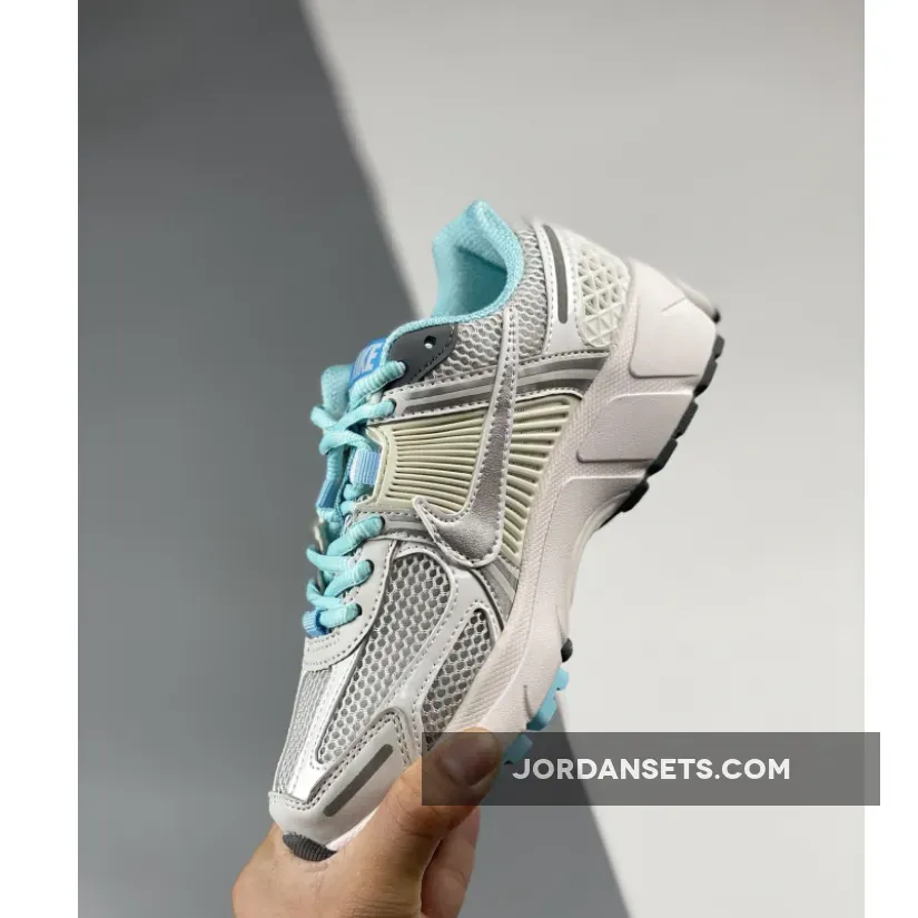 This Nike Zoom Vomero 5 “520” is made from a mix of mesh and leather in a color palette of cool greys and icy blues.