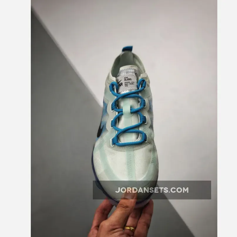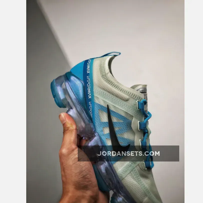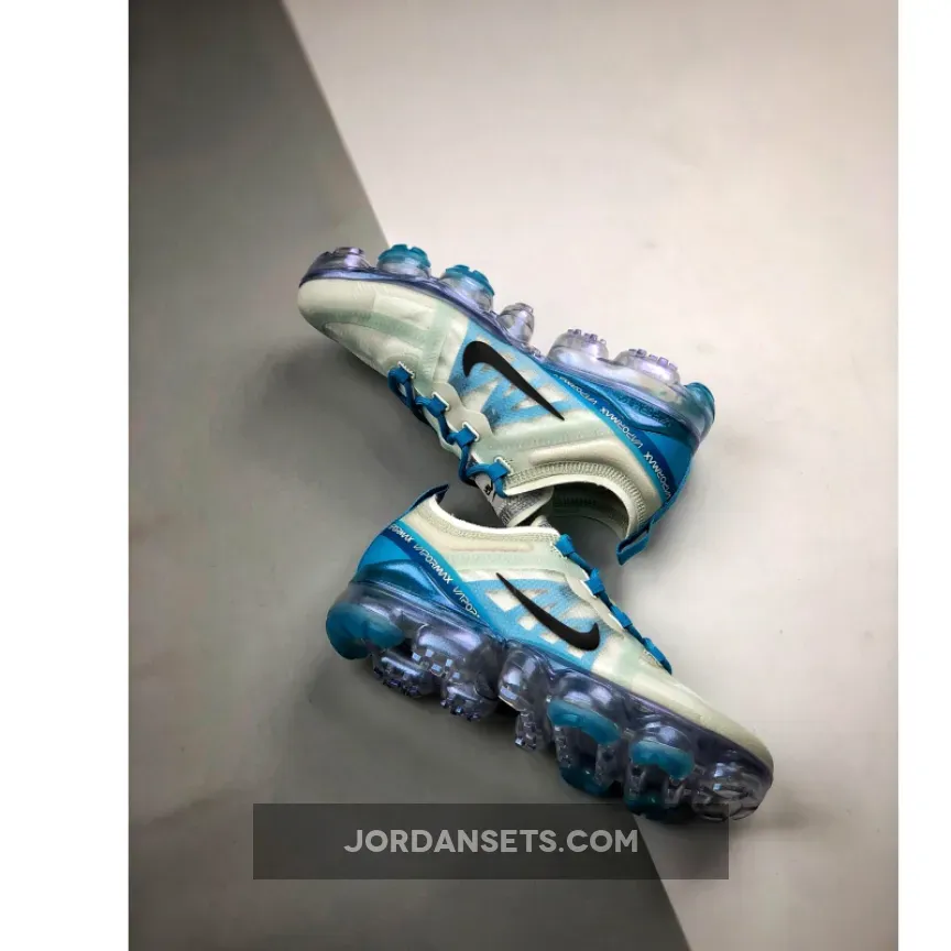 It features its signature TPE-infused upper accented in Baby Blue to give off that spring vibe. A Black Swoosh logo on the sides atop a shimmery clear VaporMax sole unit completes the design.
