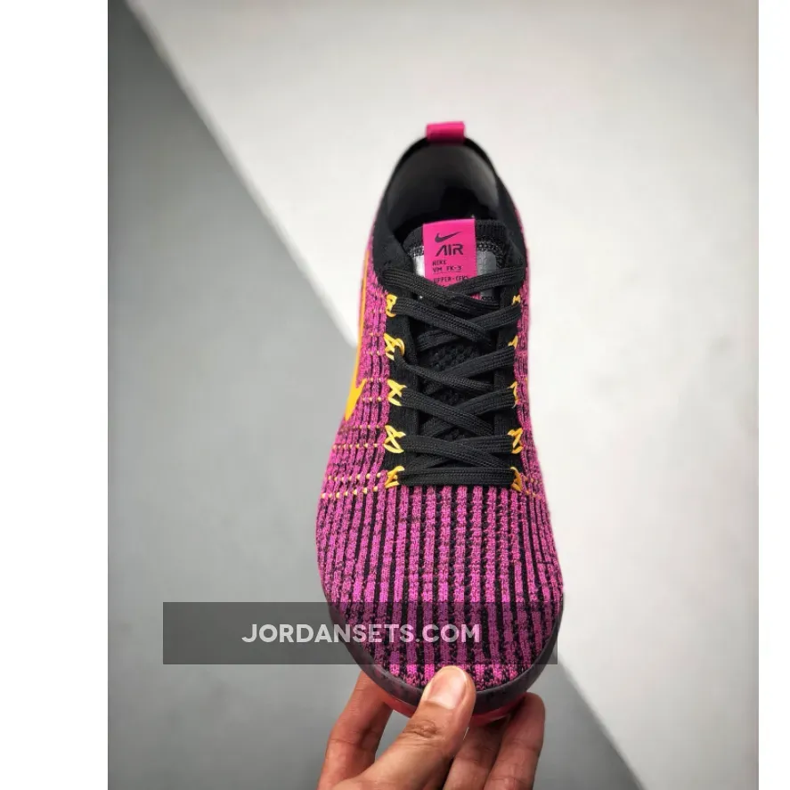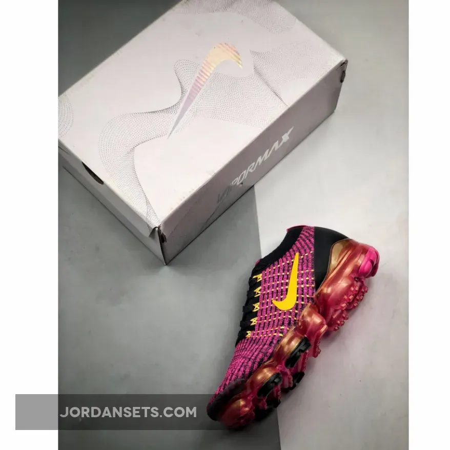 This women’s exclusive release features a Fuchsia and Black Flyknit upper with Laser Orange Flywire cables, Swoosh logos, tongue branding, insoles and also used around the heel of the outsole. A Fuchsia VaporMax sole unit completes the design.
