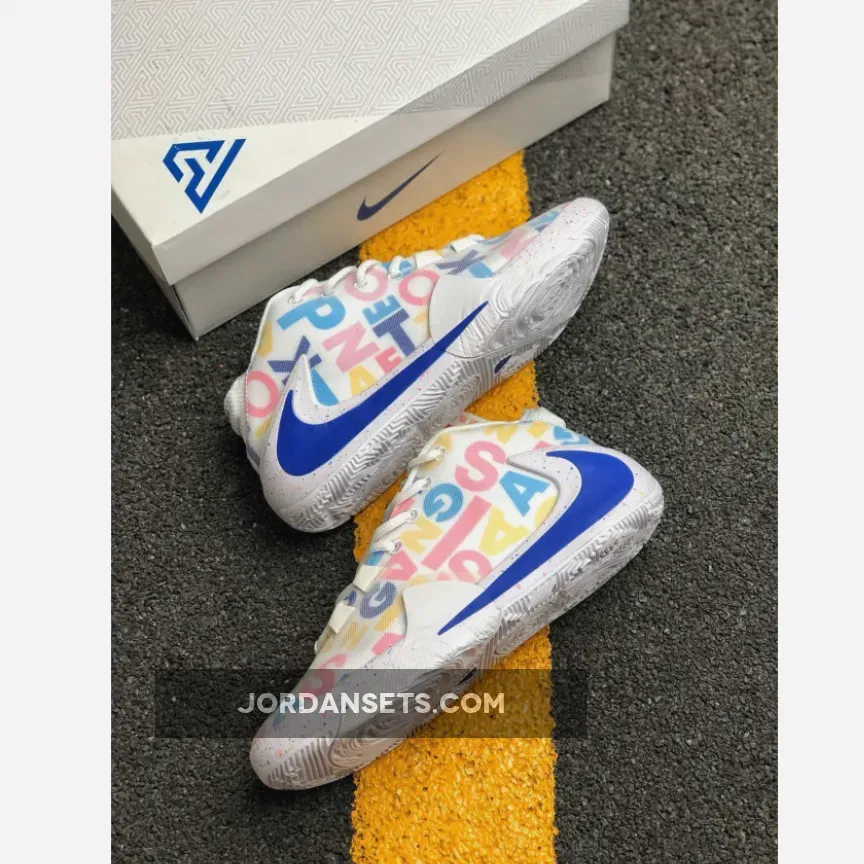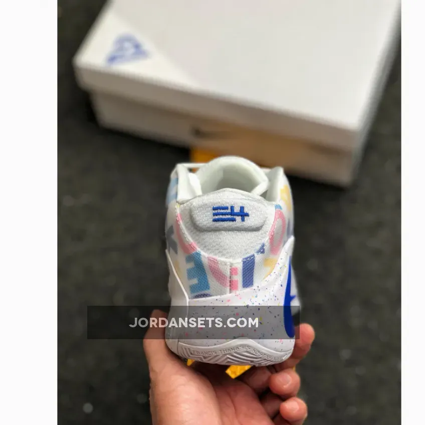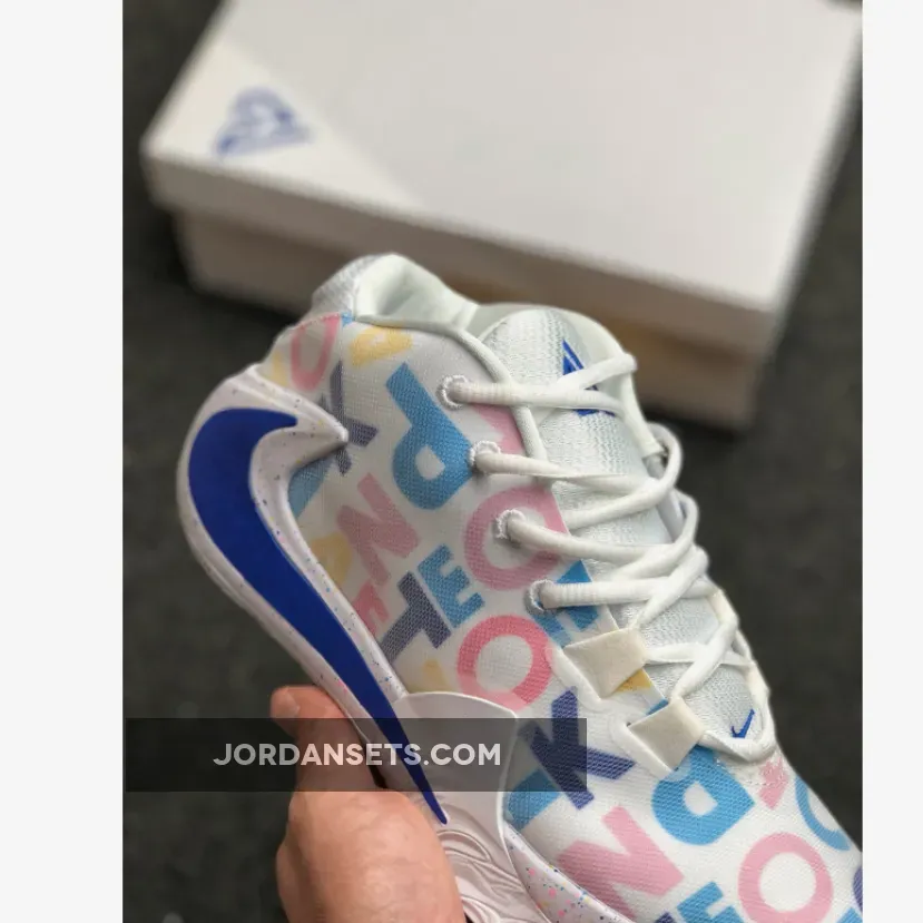 This special edition of the Freak 1 is highlighted with colorful letters covering the entire upper from the Greek Freak’s long and often misspelled name. A bold Blue Swoosh on the midsole with speckled detailing completes the design.