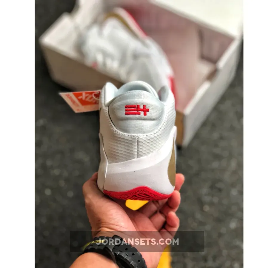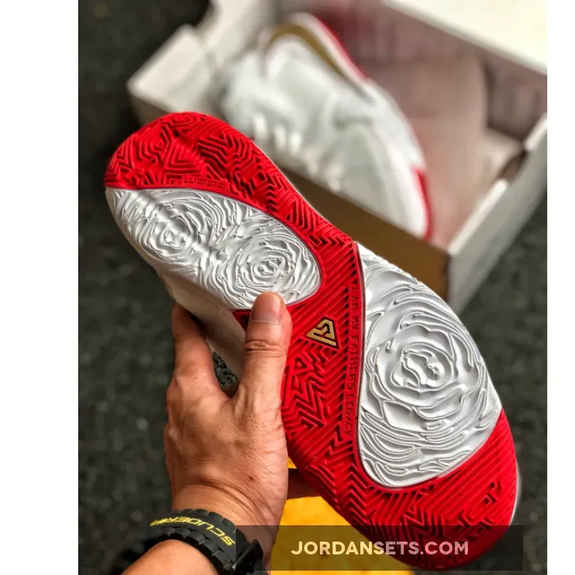 This offering of the Nike Zoom Freak 1 is dubbed, “Roses” which pays tribute to Giannis’ later father, Charles. Dressed in a White, Metallic Gold, and University Red color scheme, the shoe includes a text on the rose-patterned outsole that reads, “I Am My Father’s Legacy.”