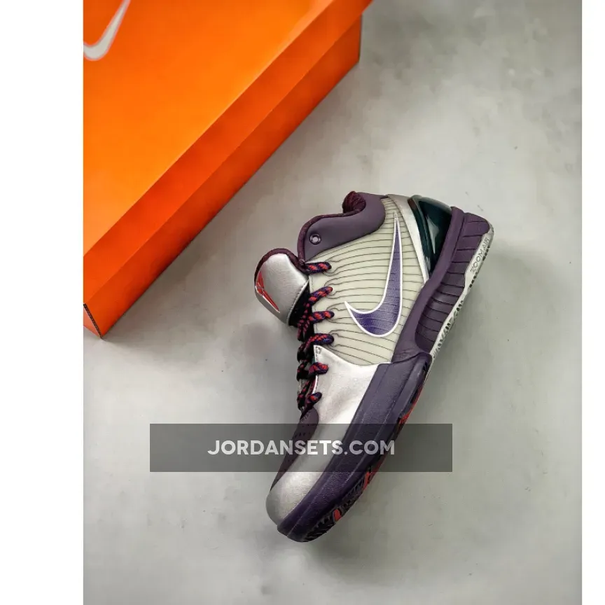 The 2009 Zoom Kobe 4 ‘Chaos Joker’ pays tribute to Heath Ledger’s Oscar-winning performance in Christopher Nolan’s 2008 movie The Dark Knight. The colorway is based on the Joker’s outfit, sporting a blend of metallic silver, Abyss and Nightshade as well as a purple silk-like material on the collar, toe box and tongue. The shoe is supported by Flywire technology, a Lunar Foam midsole and Zoom Air cushioning in the heel, while blood-spattered detailing emerges on both the insole and outsole.