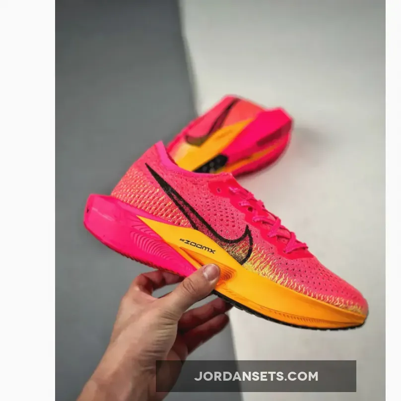 “I’m super stoked with my new ZoomX VaporFly 3! ? The Hyper Pink/Laser Orange colorway is ? and the shoe’s performance is ?. Nike customer service was ? helpful when I had sizing issues. Highly recommend for runners of all levels ?♀️.”