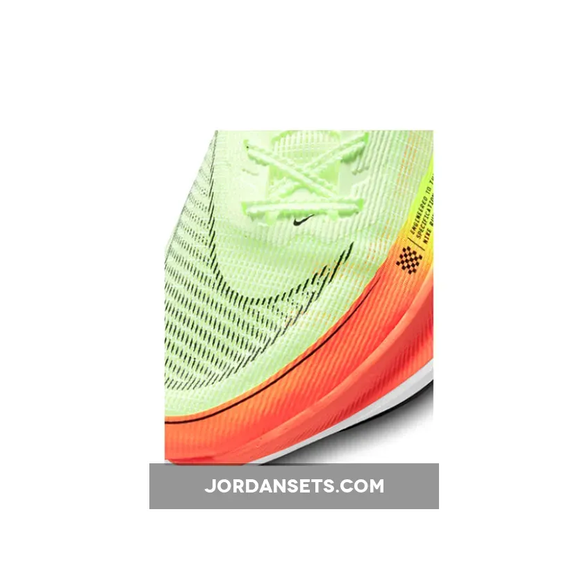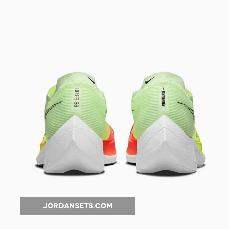 This striking colourway is far from ordinary, and it’s pretty obvious. This one also serves a smooth transitional pattern between the two tangy hues. For example, the forefoot suddenly merges into yellow and orange from bright neon green. On the other hand, the entire VaporFly NEXT% upper body wears the blinding shade of neon green with very subtle black accents. A masterpiece in the Nike running series, this ZoomX VaporFly NEXT% version 2 is the best at everything it does! The stretchy and breathable walls keep your feet safe and fresh all the time. So, the ZoomX midsole sits underneath, giving you the maximum bouncy comfort and responsive cushioning, no matter what track you hit.