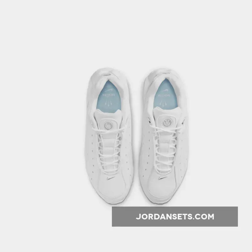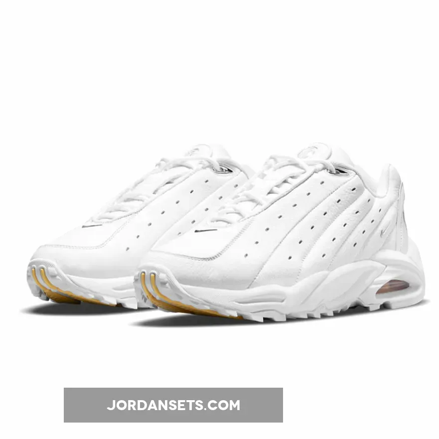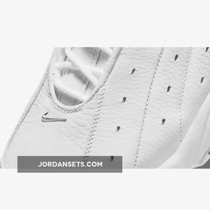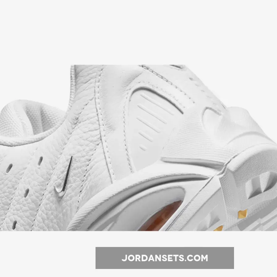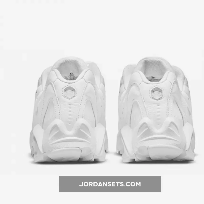 Crafted in partnership with Drake’s apparel brand, the NOCTA x Nike Hot Step Air Terra ‘White’ makes use of a tumbled leather upper in a blank-slate finish. A series of diagonal stitched lines, along with perforated detailing, embellish each of the sneaker’s side panels. Jeweled NOCTA branding is displayed atop the tongue, while chrome mini-Swooshes adorn the toe box and lateral heel. The sneaker rides on a matching white foam midsole, featuring sculpted sidewalls and an exposed yellow-tinged Air-sole unit under the heel.
