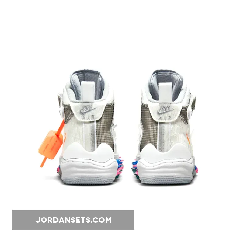 Quality materials & design! ? The Air Force 1 Mid White is a game-changer ?. Transparent upper with knit details & spiked sole – love it! ? #OffWhiteXNike #AF1MidWhite #SneakerGame ?